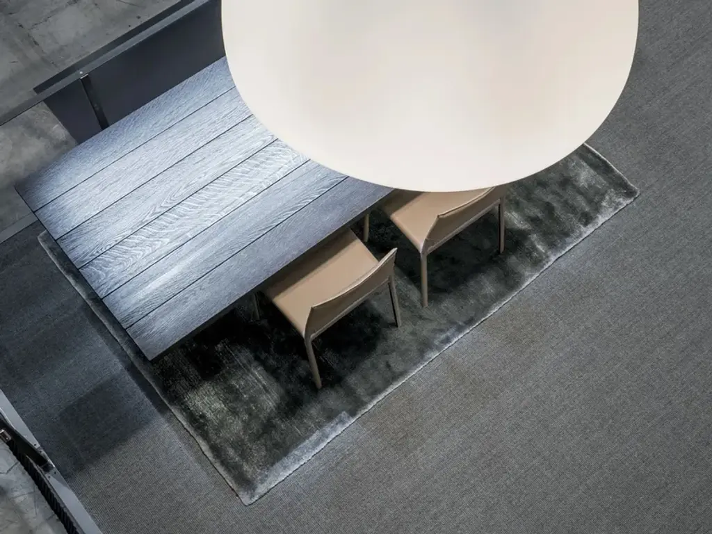 "Kama" was introduced by G.T.DESIGN in 2001 revolutionizing the contemporary rug industry and becoming part of the history of design. The first rug to use a sumptuous and wild hand-woven viscose fiber, "Kama" captures the light and let it fluctuate on its weave.A design of Deanna Comellini, the groundbreaking rug features the highest quality of the reflective fiber to create a thick yarn with a unique brilliance, softness and color depth. The dope dyed yarn is hand weaved on traditional looms and cut in irregular technique, making the luxurious rug so seductive that it is named after the Indian God of Love.Bringing a sensorial feel to interior design, "Kama" takes center stage in any space, shifting the perception of rug design from accessory to essential element in interior design. A timeless favorite of star architects and included in prominent design brands project, "Kama" is offered in a wide range of sizes and vibrant colors. It remains a bestseller and a trendsetter to this day and is considered a modern day classic.In the color "Argento Vero", a bright silvery tone, "Kama" creates a surface of great visual impact, precious and magnetic."Kama" is a vegan rug realized in the best quality viscose fiber derived from cellulose. "Kama"’s yarn has gained two sustainability and ethics certifications.- Material: high quality viscose- Structure: hand woven on traditional looms- Thickness: 15 mm