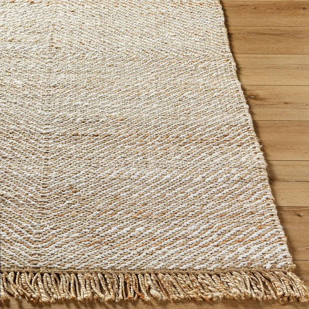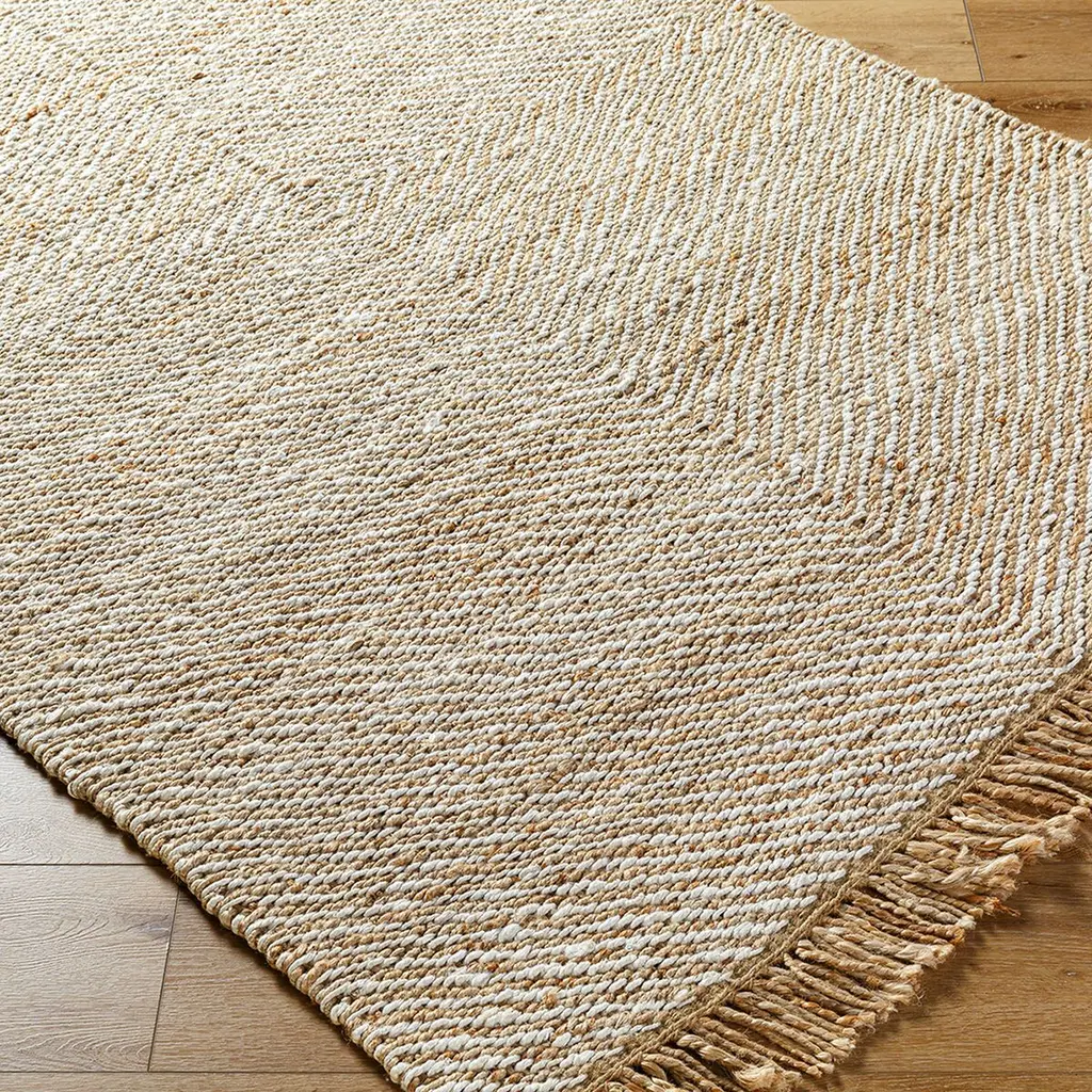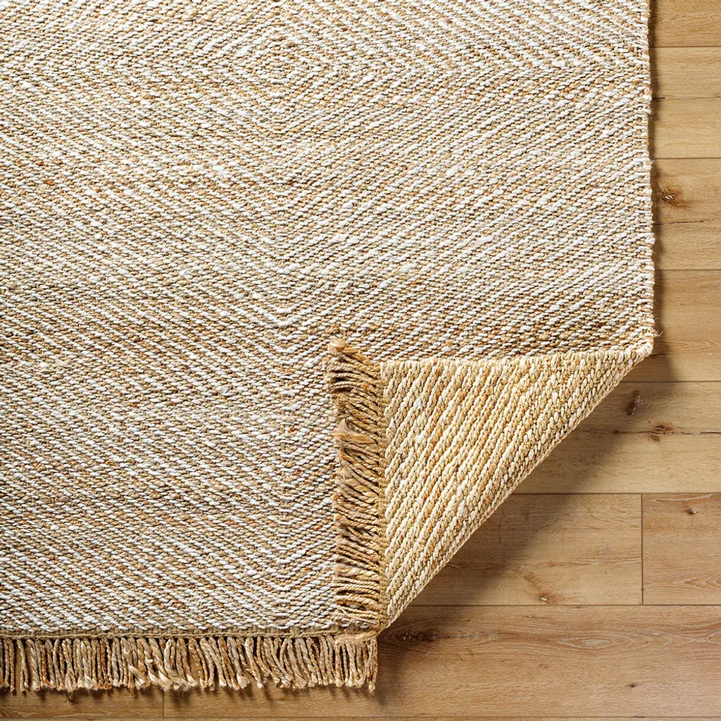 Experience the perfect blend of classic and contemporary with the Kamey handmade rug, a special collaboration between Becki Owens x Surya. Ideal for those who adore Farmhouse Cottage style, this piece features a traditional diamond weave pattern that adds an appealing texture to your floors. Its neutral tones of sandy brown and off-white complement any interior decor seamlessly. Crafted in India from sturdy jute, this handwoven rug is built to last without a pile, ensuring it's easy to maintain while still offering ample comfort underfoot. This beautiful rug also boasts fringes on its top and bottom for an added touch of charm. To keep it looking its best, we recommend using a rug pad underneath and spot cleaning with water only when necessary. Add this delightful piece to your home for an instant style update!