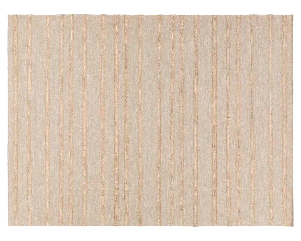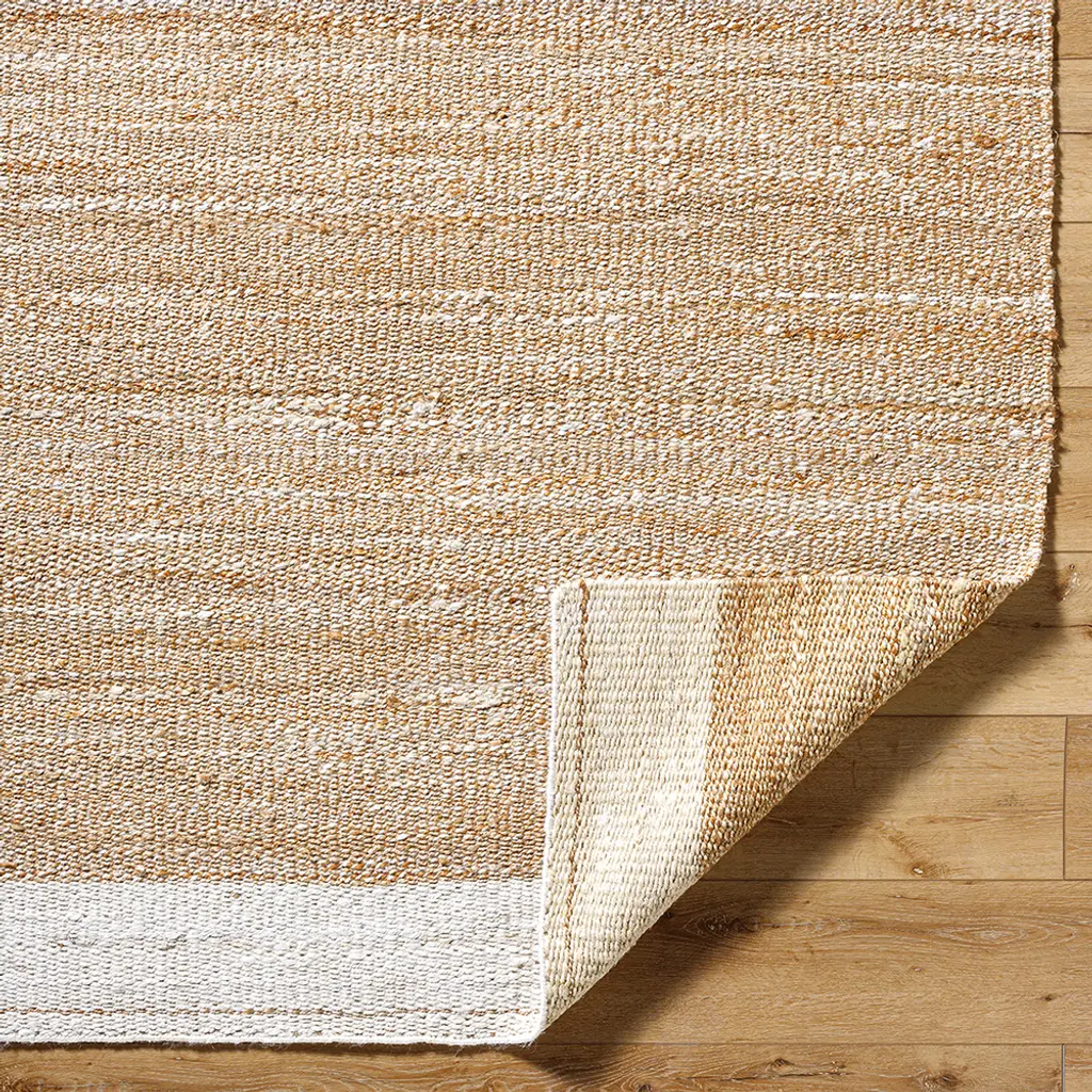 Introduce a touch of rustic charm to your space with our Kamey handmade rug, designed in an exclusive collaboration between Becki Owens and Surya. Perfect for that Farmhouse Cottage style you love, this stunning piece features neutral tones of sandy brown bordered by off-white bars at the top and bottom. Created using traditional hand-woven techniques in India, the rug is made from natural Jute fibers which adds to its organic appeal. This no-pile rug is easy to maintain with spot cleaning using water only and we recommend using it with a rug pad for additional comfort and longevity. Step into serenity every day with our delightful Kamey rug!