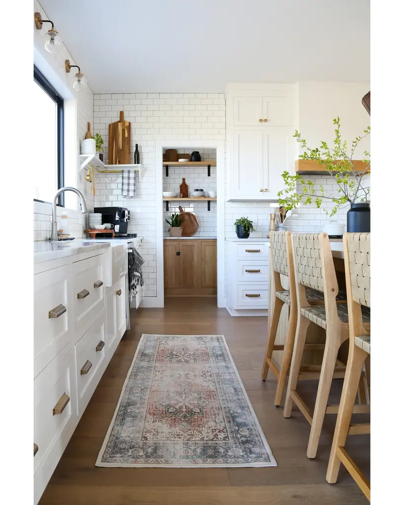 Kamran Coral Rug blends a brilliant palette of sophisticated colors with a classic, Persian-inspired design. Inspired by traditional Heriz rugs, this rug features a bold geometric pattern with a large medallion and ornate border. It's tinted in stone blue and coral red rug, purposefully distressed for that weathered, rustic look. Water-resistant, stain-resistant, and machine-washable.
