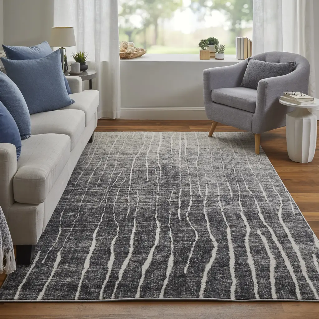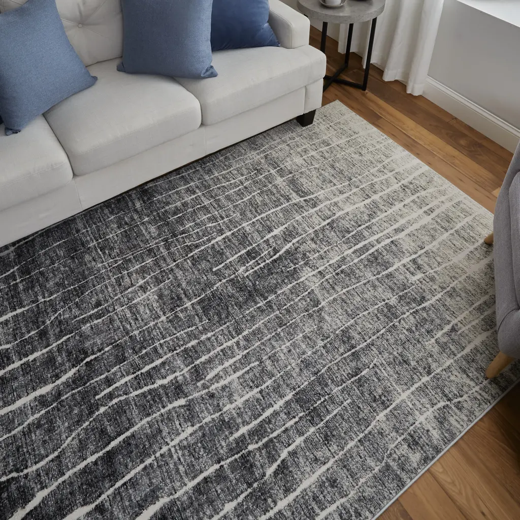 Kano Transitional Abstract - Black/gray/ivory Area Rug - 6'7" X 9'6" Rectangle