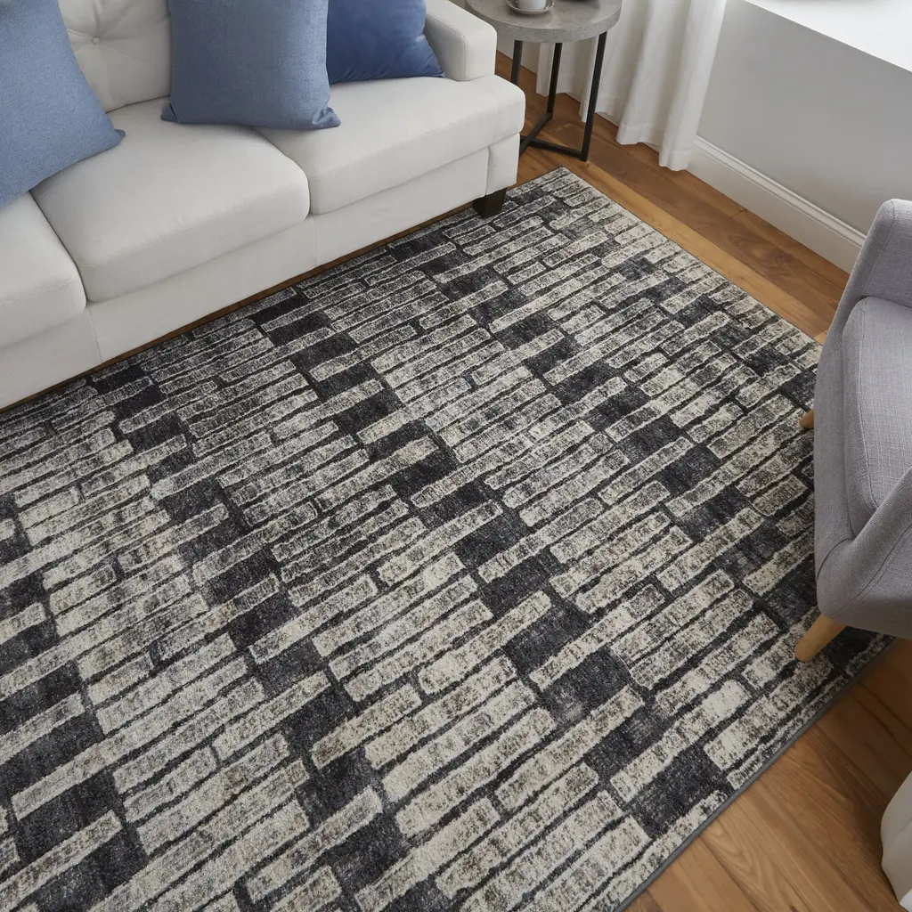 Kano Transitional Geometric - Gray/black/ivory Area Rug - 6'7" X 9'6" Rectangle
