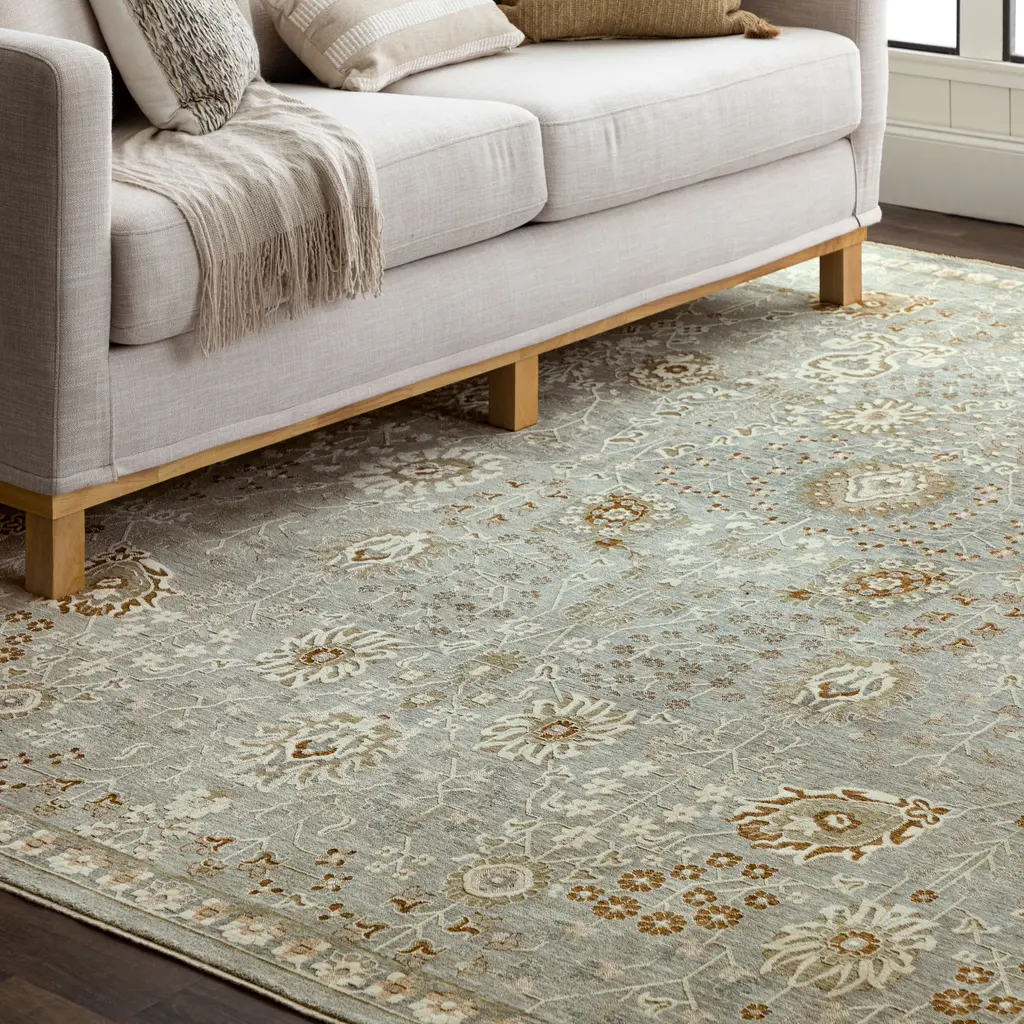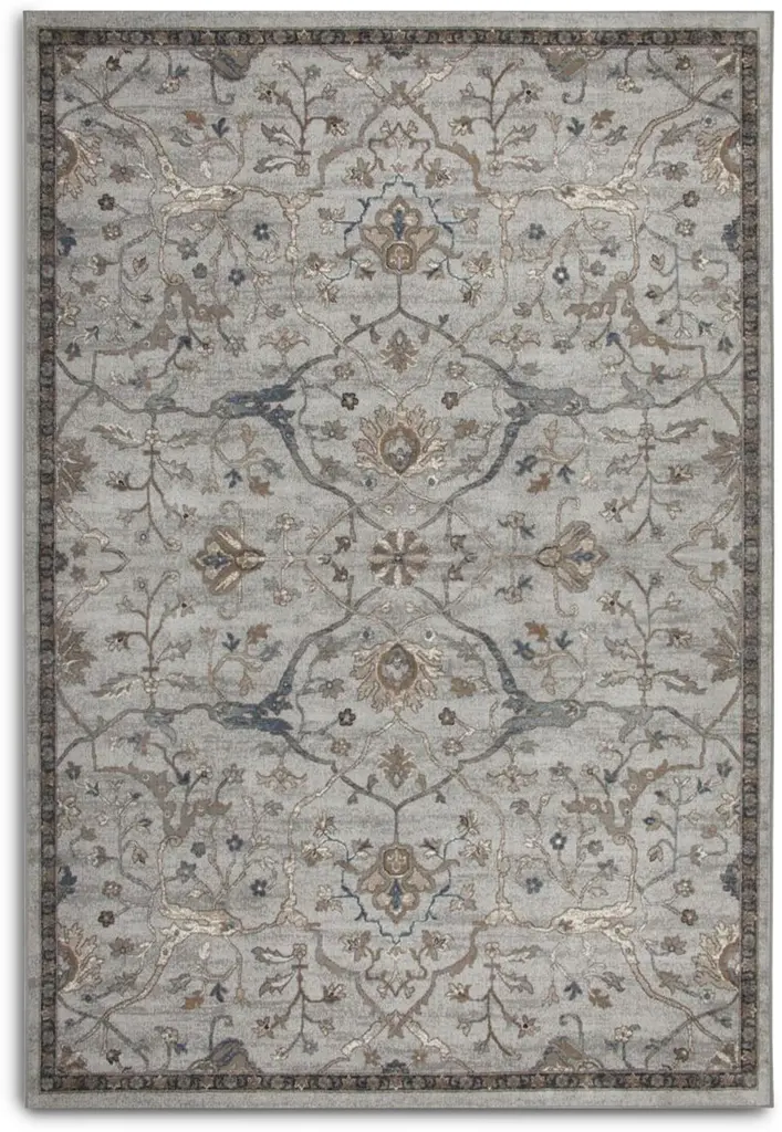 Traditional designs are the hallmark of Karastan's Divina Collection. Sumptuous polyester fiber with a burnished sheen is displayed in soft, neutral colors in a carved effect high/low pile. The rugs of the Divina Collection are available in dreamy shades of cream, light blue, grey and bring a touch of elegance to any room. STYLISH DESIGN: This trendsetting ornamental area rug design in a versatile color palette can be seamlessly integrated into a variety of home décor styles. DURABLE MATERIALS: Machine woven premium polyester surface fiber with clearcoat spray latex backing offers superior strength stain resistance, fade-resistant color clarity, and fixed shape under daily use. LOW PILE: Low-profile pile height offers ideal functionality for any busy space by helping reduce tripping hazards and entryway obstructions as it won't stop doors from opening or closing. EASY CARE AND CLEAN: Simply vacuum regularly, spot clean with a solution of mild detergent and water, or clean professionally when needed. IMPORTED FROM TURKEY: Karastan Rugs has partnerships with top vendors from around the globe to provide the best décor solutions for your home.