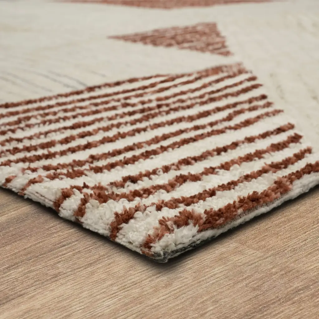 Collection: Central Valley Colors: Brick Red, Cream, Beige, Gray Construction: Machine Made Material: Face: 100% Polyester / Warp: 100% Cotton Canvas Pile: Medium Pile Pile Height: 0.39" Styles: Contemporary Backing: Cotton Canvas Made In: India Thickness: 0.39" Price Range: $$$$$ (Affordable)