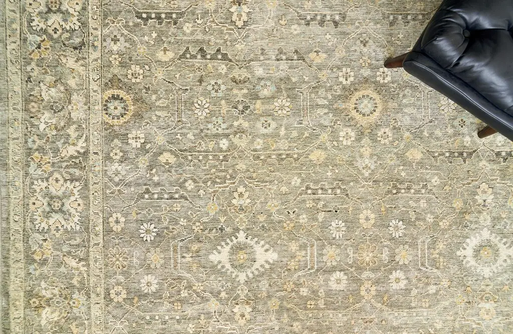 The Karma Collection is hand-knotted of 100% wool. The use of random hand shearing and special washing processes gives each piece a unique distressed finish. With the feel of time-worn vintage rugs and the look of an antique, these sun-washed reproductions ensure no two rugs are the same.