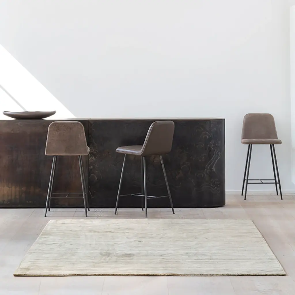 Karma rug is made of recycled bamboo fibers which gives a durable rug with a light shine which is easy to maintain. Bamboo fibers are made of bamboo pulp and have strong durability, stability and tenacity. The quality of the fibers minimizes pilling to almost nothing. The production of Bamboo is sustainable as it thrives without any pesticides and also it is biodegradable and thus a very eco-friendly material.
