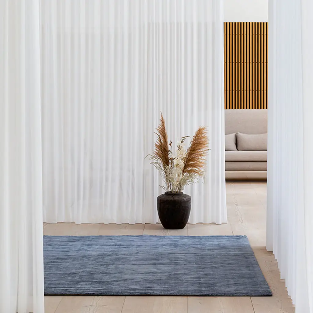 Karma rug is made of recycled bamboo fibers which gives a durable rug with a light shine which is easy to maintain. Bamboo fibers are made of bamboo pulp and have strong durability, stability and tenacity. The quality of the fibers minimizes pilling to almost nothing. The production of Bamboo is sustainable as it thrives without any pesticides and also it is biodegradable and thus a very eco-friendly material.