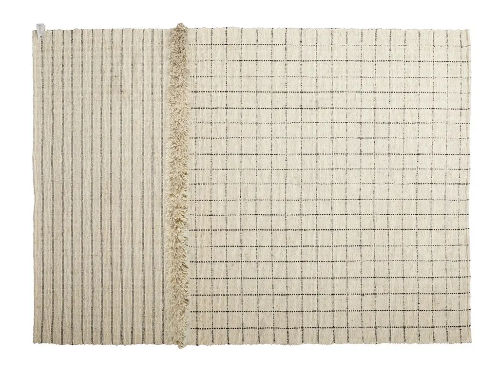 Karo large Subas rug by Sebastian HerknerMaterials: 100% natural virgin wool. Technique: Naturally dyed fibers. Hand-woven in Colombia.Dimensions: W 310 x L 420 cm Available in colors: Karo, linea 1, linea 2, moton, oruga.The Subas Karo Rug, available in three sizes, is a subtle, monochrome design by Sebastian Herkner, who experimented with mixing different structures and surfaces. The entirely handmade piece combines a stripe and checks pattern as well as various pile heights and weaving techniques, giving the wool rug a contemporary feel while showcasing the artful craftsmanship of the Colombian weavers. It’s understated, yet the intriguing design that’s great for adding textures to any room. Each rug is manufactured in family-run workshops located in Suba, a suburb of Colombia’s capital Bogotá. The craftspeople there have learned the techniques to process sheep wool from previous generations. Alone the preparation of the wool takes three days, while the artesanos and artesanas work 15 days on producing the final rug. German designer Sebastian Herkner is a long-term collaborator of Ames and has visited Colombia multiple times to experience the country’s cities, nature and people first hand. He also visited many of the ateliers that Ames has partnered with to learn about the unique traditional crafts of Colombia's regions. A sought-after contemporary designer and recipient of many industry awards, he has worked with many international design brands, creating intriguing pieces that showcase his intuition for interesting material, color, and texture combinations.