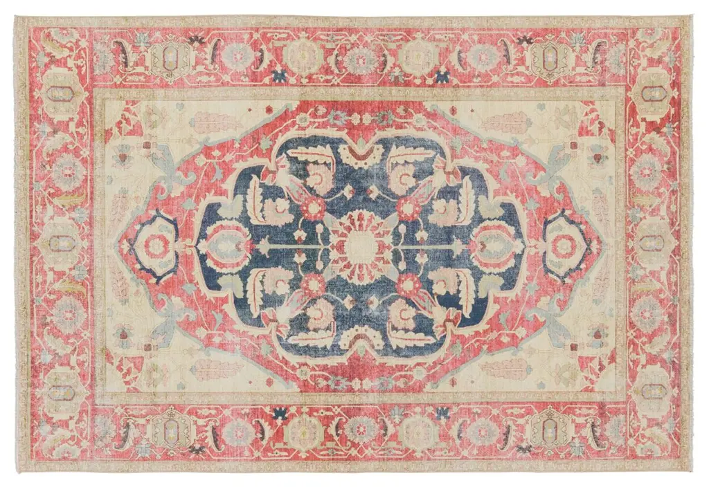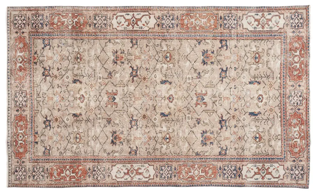 Inspired by well-traveled vintage designs, Kate Lester has launched this stunning rug collection. This impressive assortment of antique textile designs lends heirloom-quality looks and livable style to any space. The Davina area rug showcases a tribal diamond pattern emphasized by hues of beige, cream and burgundy. This digitally printed rug boasts a perfectly distressed effect for effortless charm that is matched with durability to stand up to heavily trafficked spaces such as entryways, halls, kitchens, and living rooms.