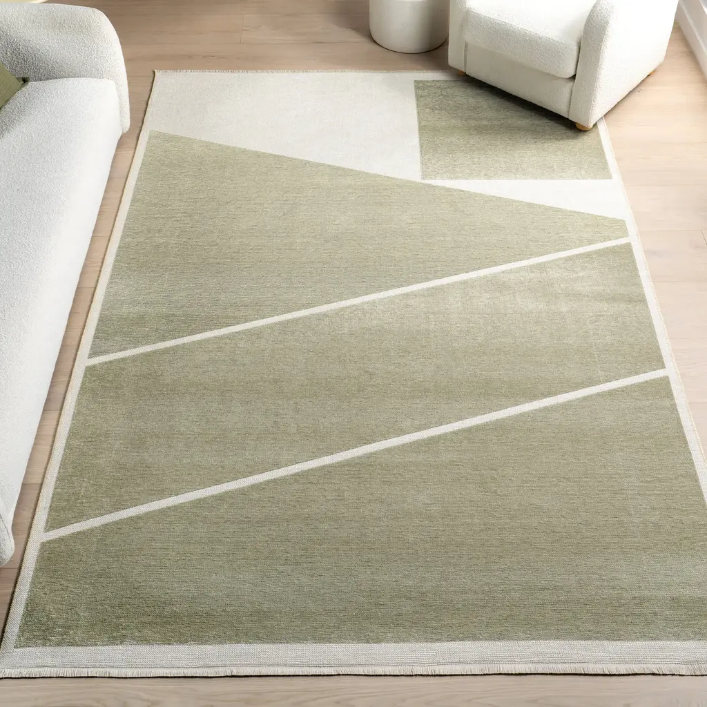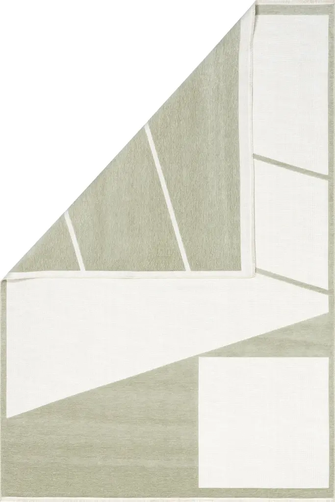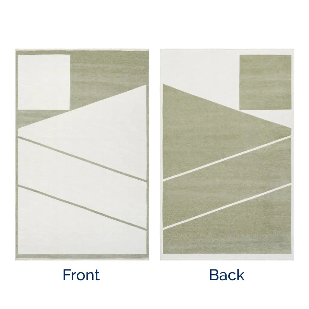 Katherine Geometric Fringed Reversible Washable Rug | Green - 4' X 6'