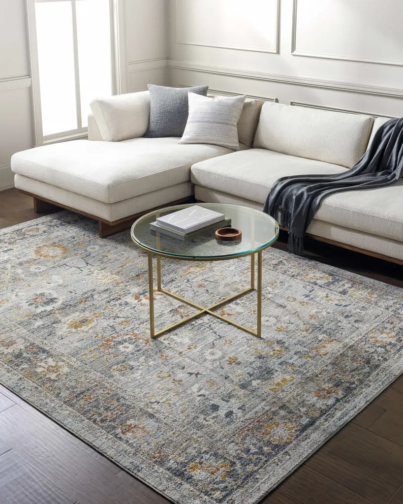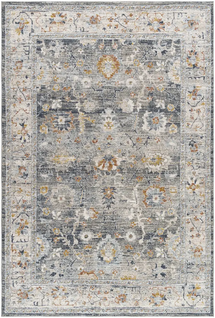 Collection: Katie Colors: Light Gray Construction: Machine Woven Material: 100% Polyester Pile: Medium Pile Pile Height: 0.31" Styles: Traditional Made In: Turkey Thickness: 0.39" Price Range: $$$$$ (Affordable)