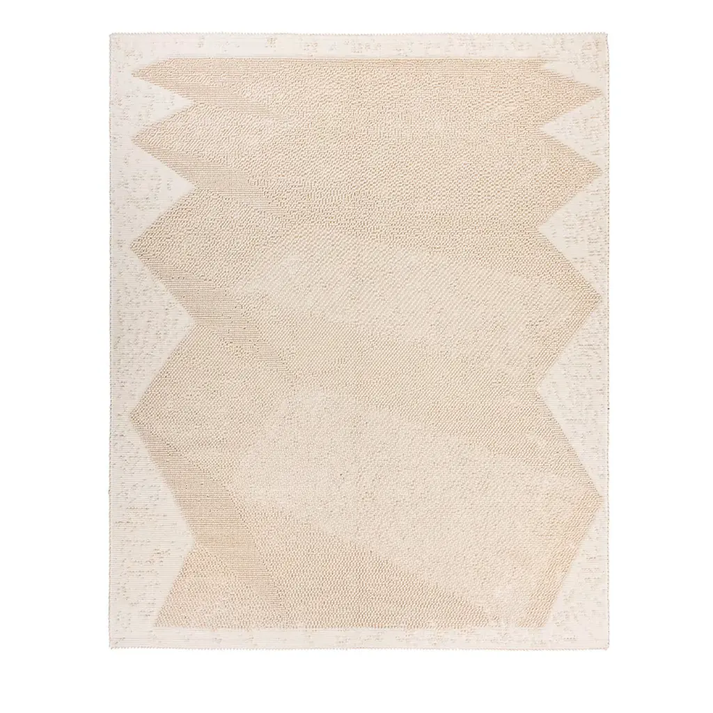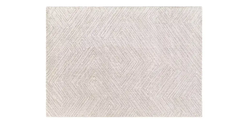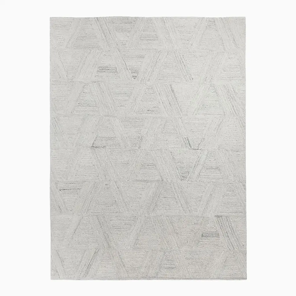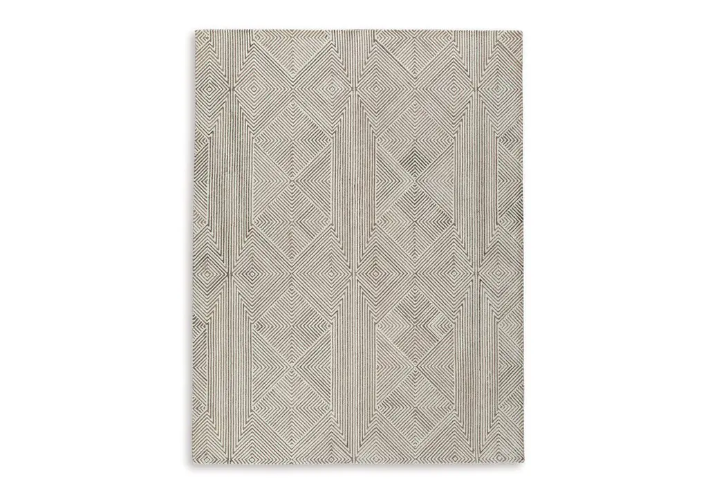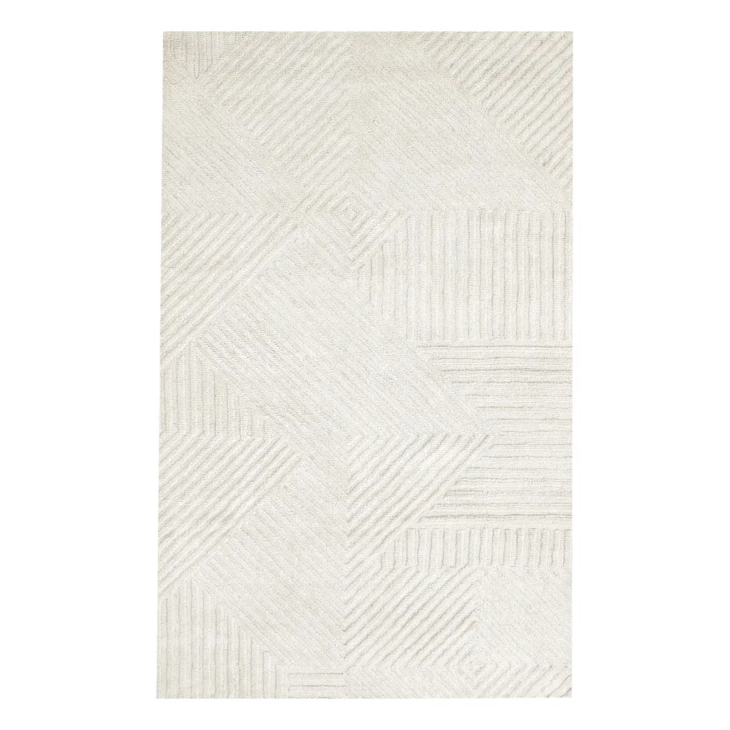 Kaveri's artful geometry gains dimension from rows of luxuriant silk and smooth, flatwoven wool. Knotted by hand, the precise lines are softened by organic variations in the shading and texture of the soft pile.
