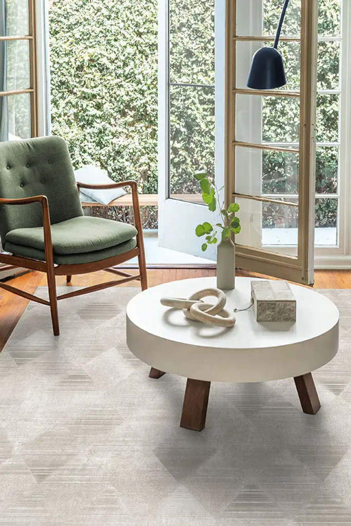Our Kavi Mosaic Stone Rug blends monochromatic hues of beige, mushroom, and cream for a neutral accent that complements a variety of home decor styles.