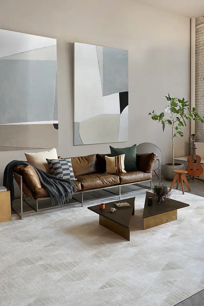 Our Kavi Mosaic Stone Rug blends monochromatic hues of beige, mushroom, and cream for a neutral accent that complements a variety of home decor styles.