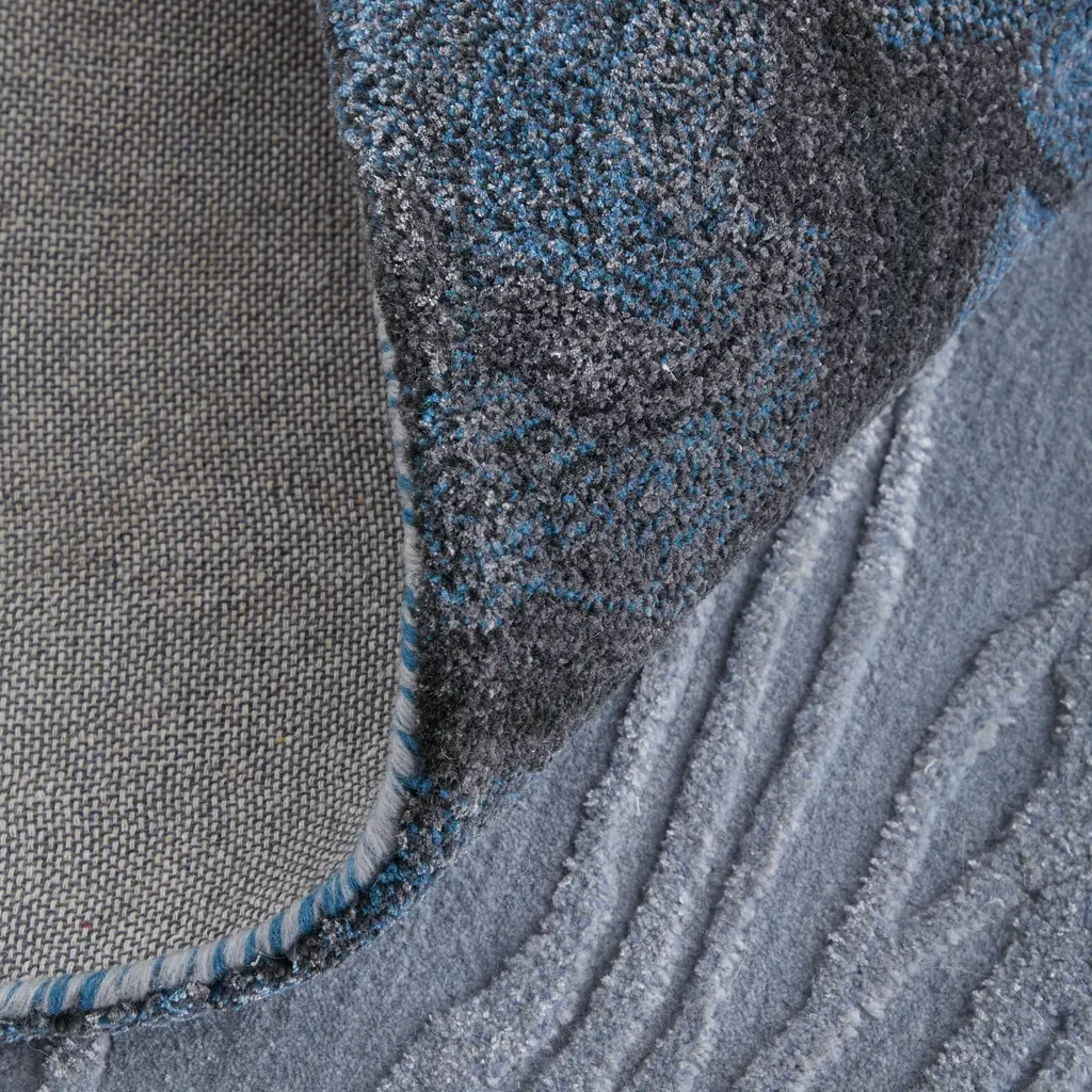 Collection: Kawai Colors: Blue, Black, Gray Construction: Hand Tufted Material: Face: Wool, Viscose / Warp: Cotton Pile: Medium Pile Pile Height: 0.51" Styles: Contemporary,Nautical & Coastal,Bohemian & Eclectic Backing: Cotton Made In: India Thickness: 0.51" Price Range: $$$$$ (Premium)