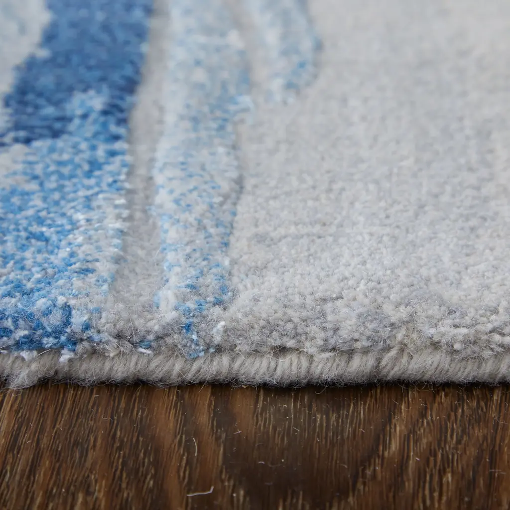 Collection: Kawai Colors: Blue, Gray Construction: Hand Tufted Material: Face: Wool, Viscose / Warp: Cotton Pile: Medium Pile Pile Height: 0.51" Styles: Contemporary,Transitional,Bohemian,Bohemian & Eclectic Backing: Cotton Made In: India Thickness: 0.51" Price Range: $$$$$ (Premium)