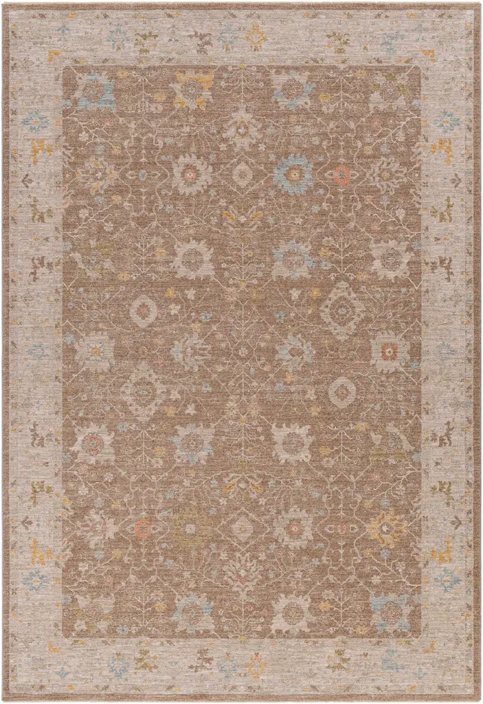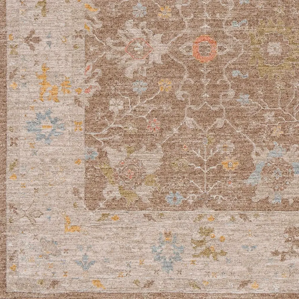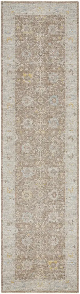 Collection: Keao Colors: Taupe, Mustard, DarkBrown, MediumGray Construction: Machine Woven Material: 100% Polyester Pile: Medium Pile Pile Height: 0.31" Styles: Traditional Made In: Turkey Thickness: 0.35" Fringe Length: 0.4" Price Range: $$$$$ (Affordable)