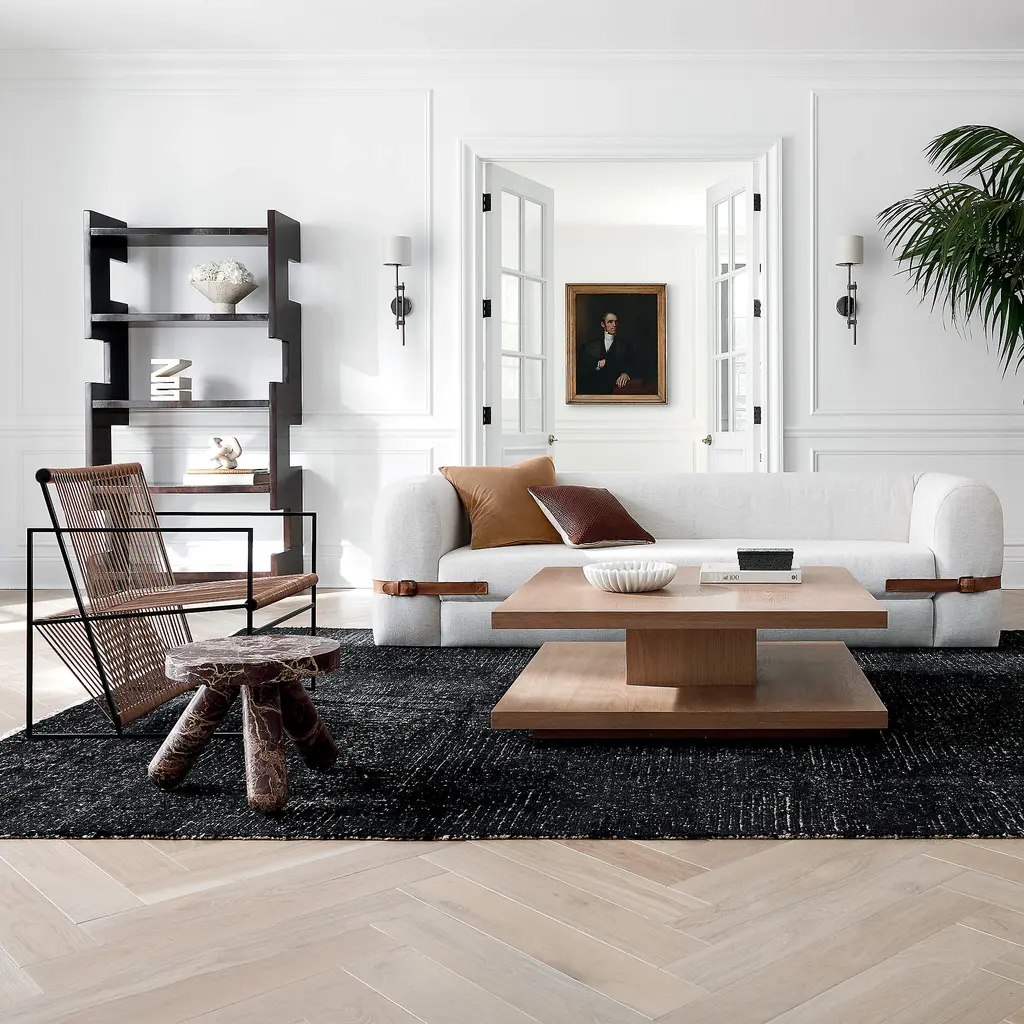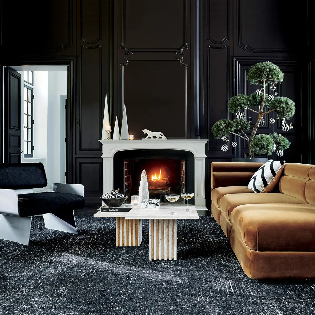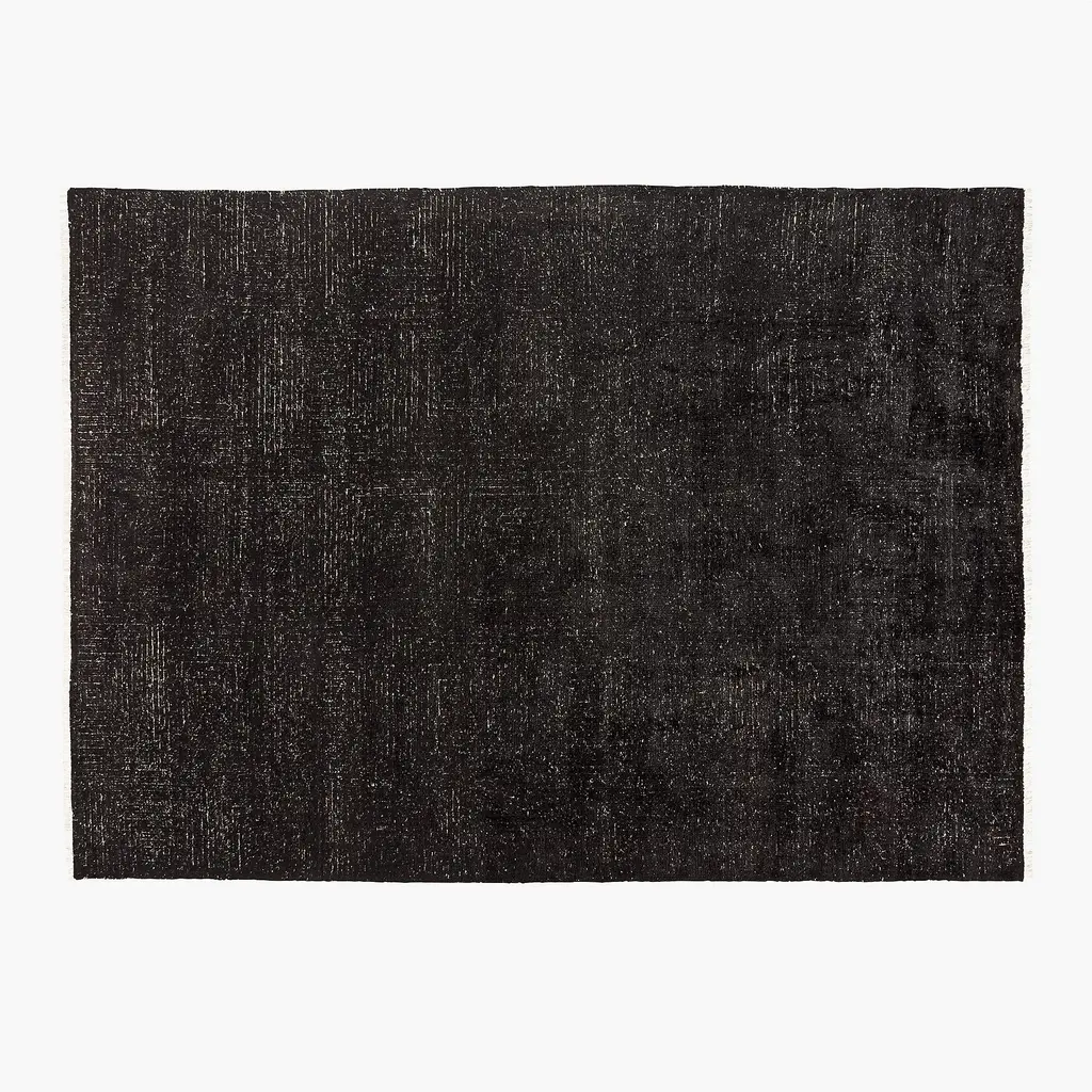 Hand-knotted from silky black viscose threads for a natural finish with a luxurious sheen. It's sophisticated minimalism at its best. CB2 exclusive. How will it look in your room? 12"x12" rug samples are available in stores for a fee refundable upon return of the sample.