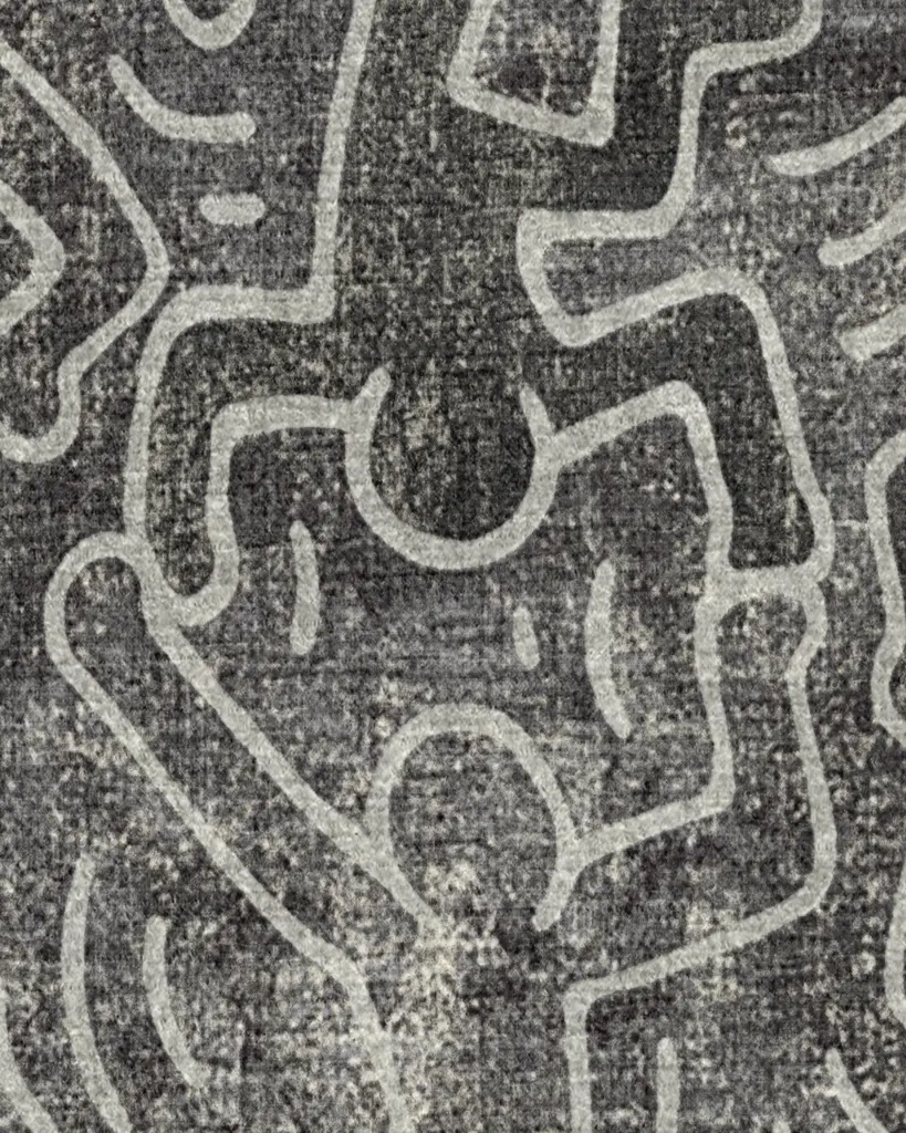 A classic trellis gets the Keith Haring treatment. Our Keith Haring Balancing Act Black Rug features Haring's figures stacked on top of each other to form this fun, repeating pattern. The soft black background with lighter accents of grey and white gives this high-contrast design a textured look. Water-resistant, stain-resistant, and machine-washable.
