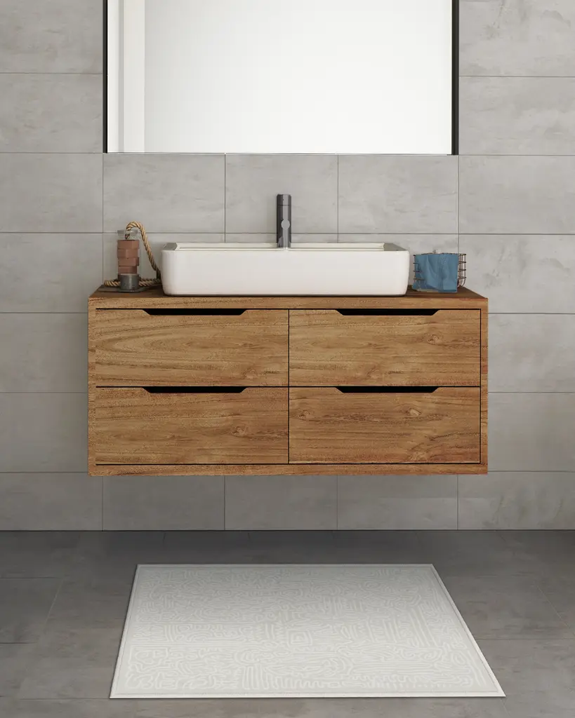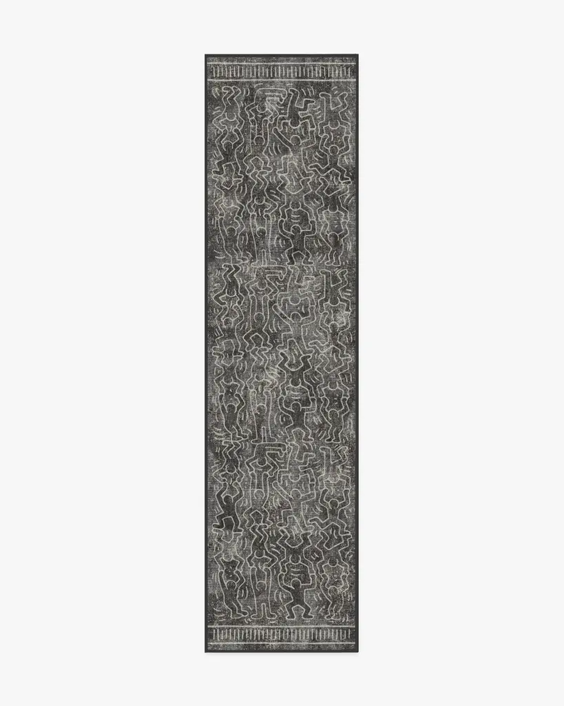 Freestyle fine art for your home. Our ornate Keith Haring Freestyle Pearl Rug features a single line design by the artist in off-white on a sandy pearl background for a subtle yet striking balance. Water-resistant, stain-resistant, and machine-washable.