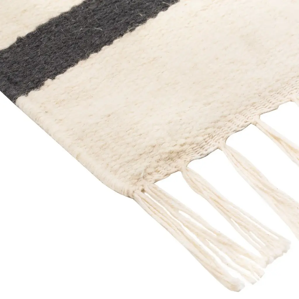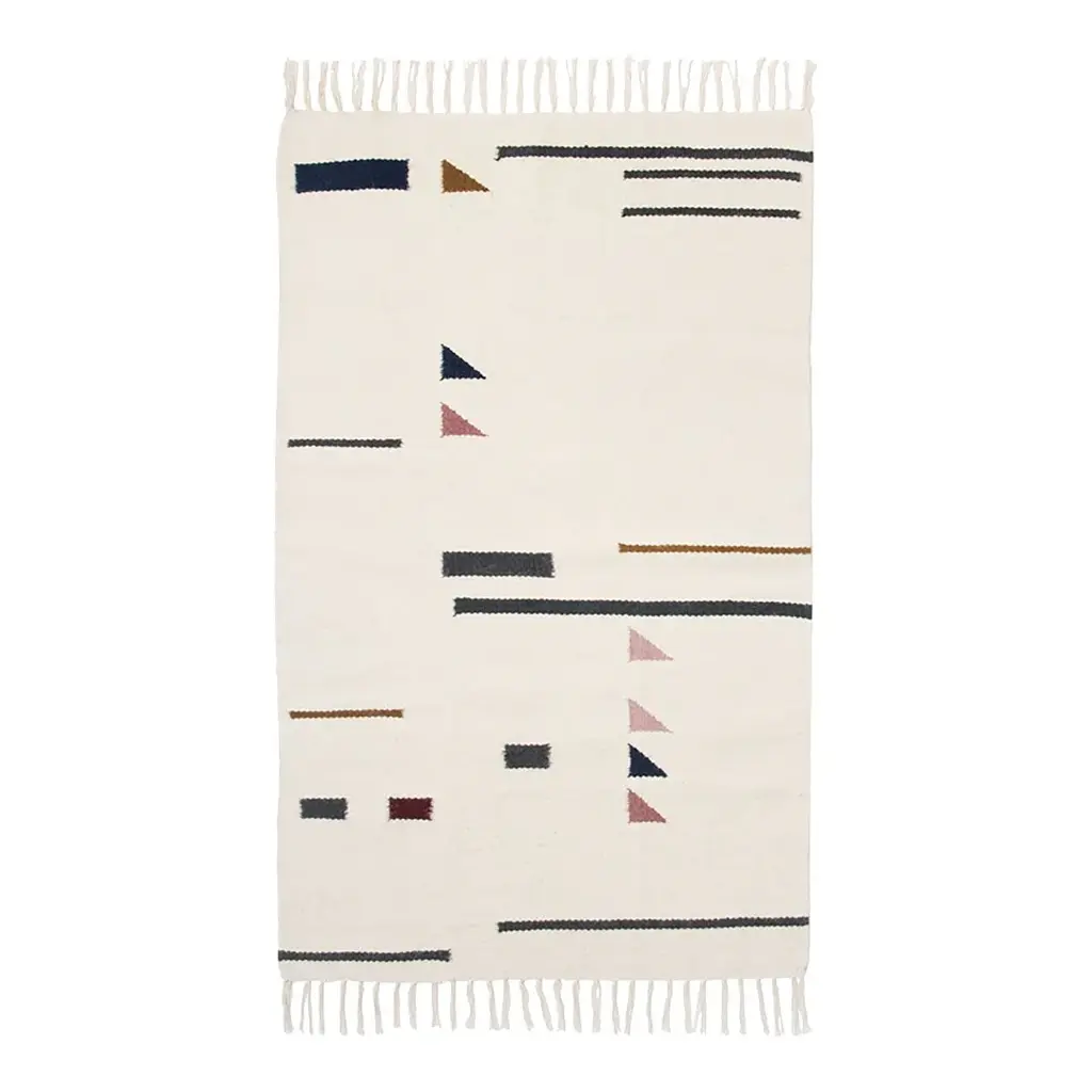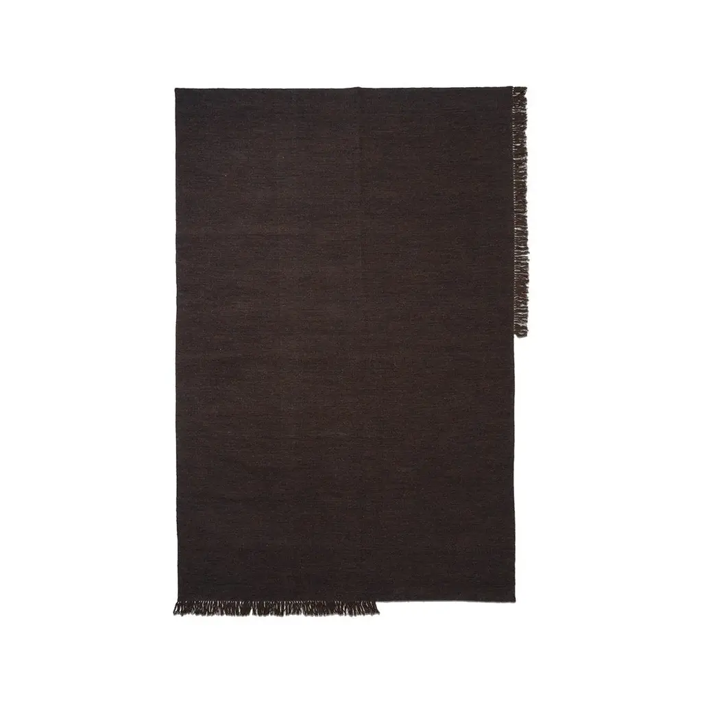 A rug is a great way to define a space and through color and form create a sense of coherence between the furniture and accessories in a room. In beautiful burnt hues, the Borders Kelim Rug redefines traditional kelim craftsmanship and combines it with our design language with a strong sense for geometric shapes and extraordinary color blocking. Our Kelim Rugs are hand-made why the weaving from rug to rug may differ slightly. The weaving technique is 'Punja' loom – a traditional and manual loom and one of the oldest weaving techniques. Also, the wool yarn is hand-dyed, and some shade variation may occur due to the nature of wool and dye. The Kelim weave and the wool yarns have a unique, coarse feel. This is part of the characteristic of the traditional kelim rugs.