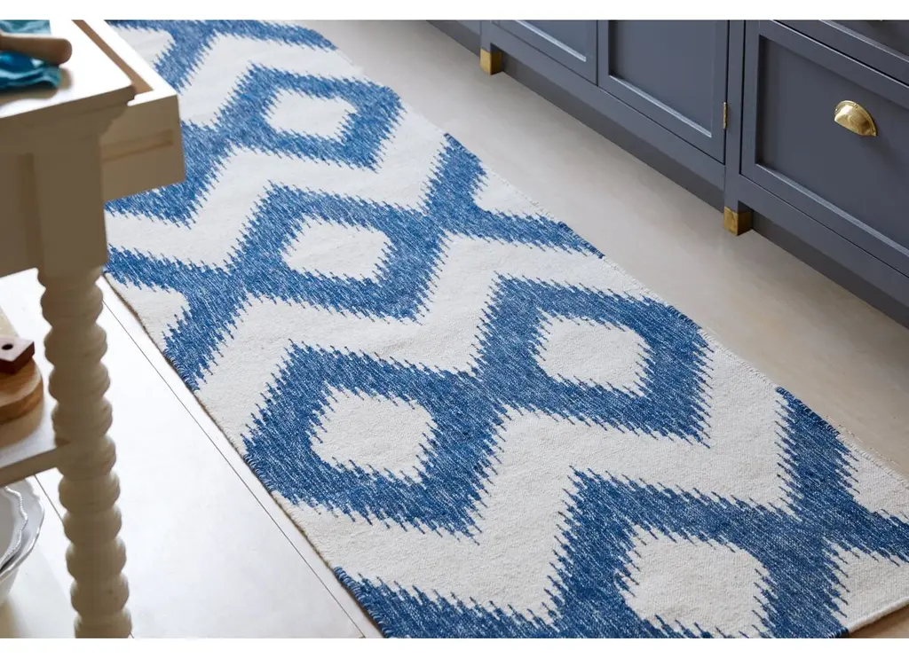 Designed to add visual impact to any room, this handwoven reversible wool rug features an ikat-inspired design in navy. We recommend a rug pad to extend the life of the rug and keep it securely in place.