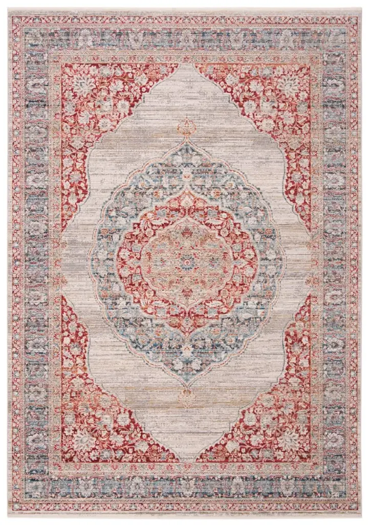 Traditional rug artistry is revived in the fashionable hues of the Kenitra Rug Collection. Flaunting ruby reds and soft blues accented in beige and ivory, and framed in ornate borders, these gorgeous floor coverings define contemporary-classic style. Kenitra is power-loomed using soft space-dyed synthetic yarns for comfort underfoot and lasting beauty. Care Instructions: Vacuum Without Beater Bar