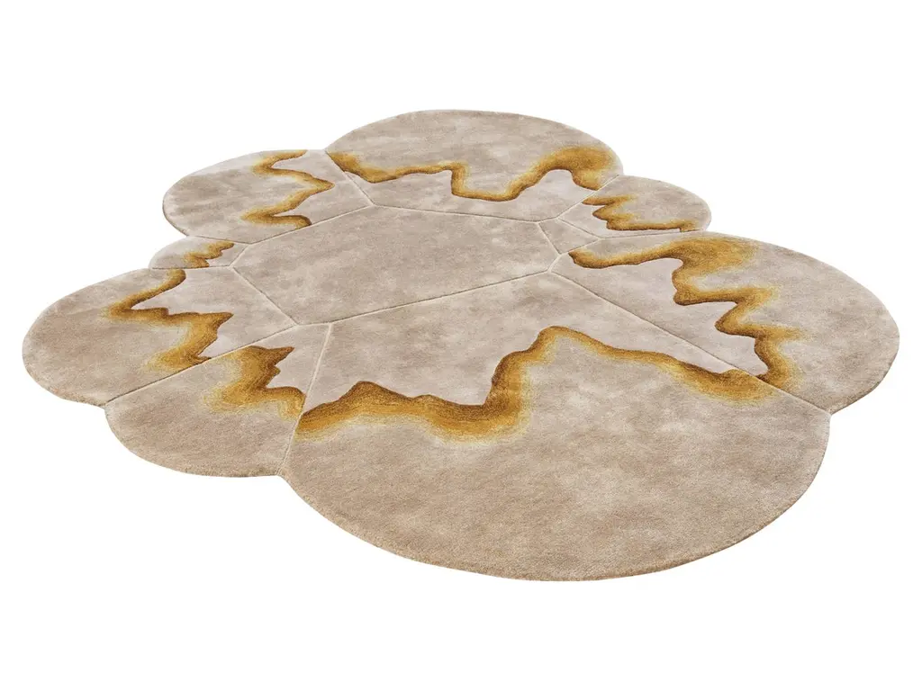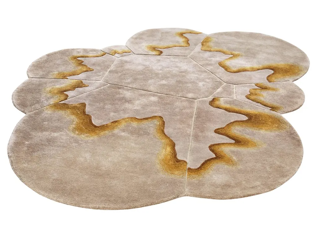 Kenna Hand Tufted Modern Shaped Silk Rug In Ivory Gold Colour By Hands