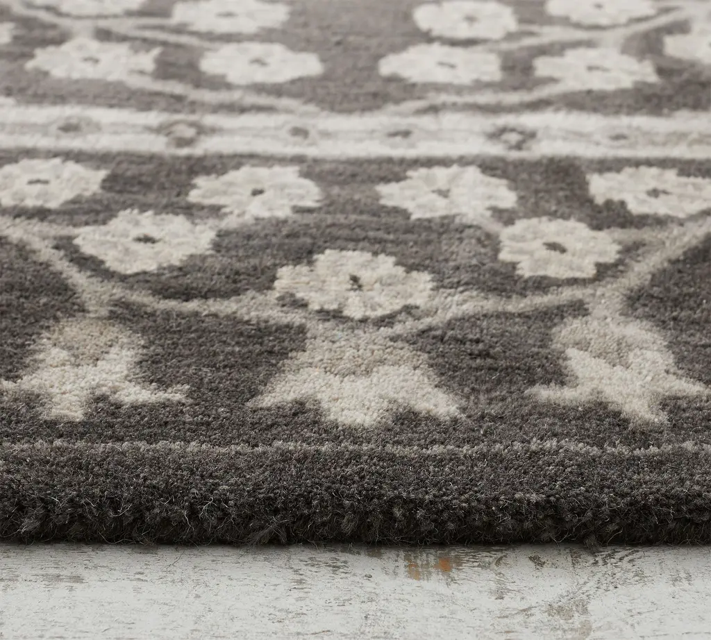 This design’s graceful symmetry in soft grays and light tans is both timeless and elegant. Handwoven of pure wool and luster washed, our Kennedy Rug has a soft feel and ties a room together beautifully.