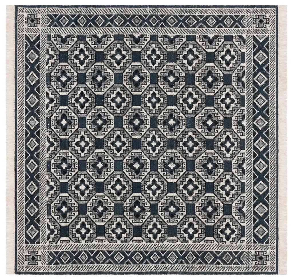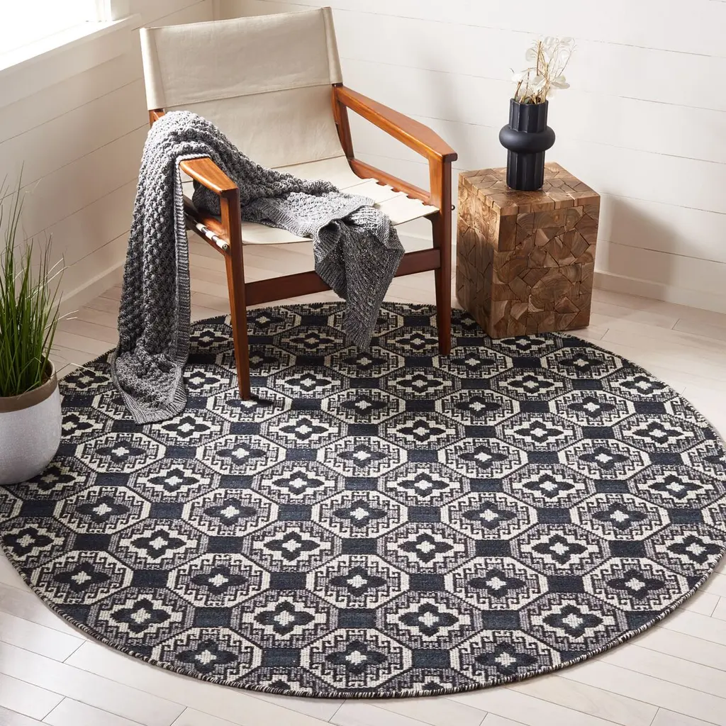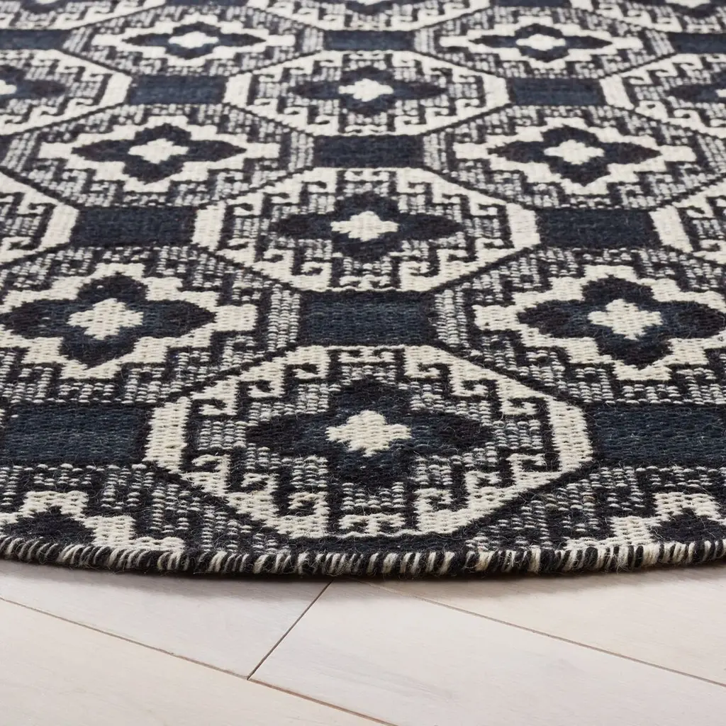 Elevate your space with the timeless elegance of our 3' x 5' Small Rectangle Wool Area Rug. Handcrafted in India using traditional Flat Weave techniques, this rug boasts a low-profile 1/4" height, making it an ideal choice for a variety of settings. Constructed from pure wool, this area rug ensures durability and a soft underfoot feel that is perfect for high-traffic areas. The bold, geometric pattern showcased in the image is captured in beautiful black and ivory hues, offering a sophisticated contrast that will complement any room. This rug features a striking array of octagonal shapes interlinked with intricate border designs, creating a sense of depth and texture that is both visually appealing and tactile. Whether you're styling a contemporary living room, a chic office, or a cozy bedroom, this wool area rug serves as a gorgeous foundation that effortlessly merges artisan craftsmanship with modern aesthetics. Its timeless color palette ensures it will seamlessly integrate with both neutral and color-rich d?cors. Add a touch of artisanal charm and refined style to your space with this exquisite wool rectangle rug, a testament to India's rich textile heritage.