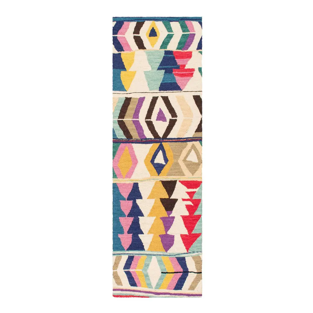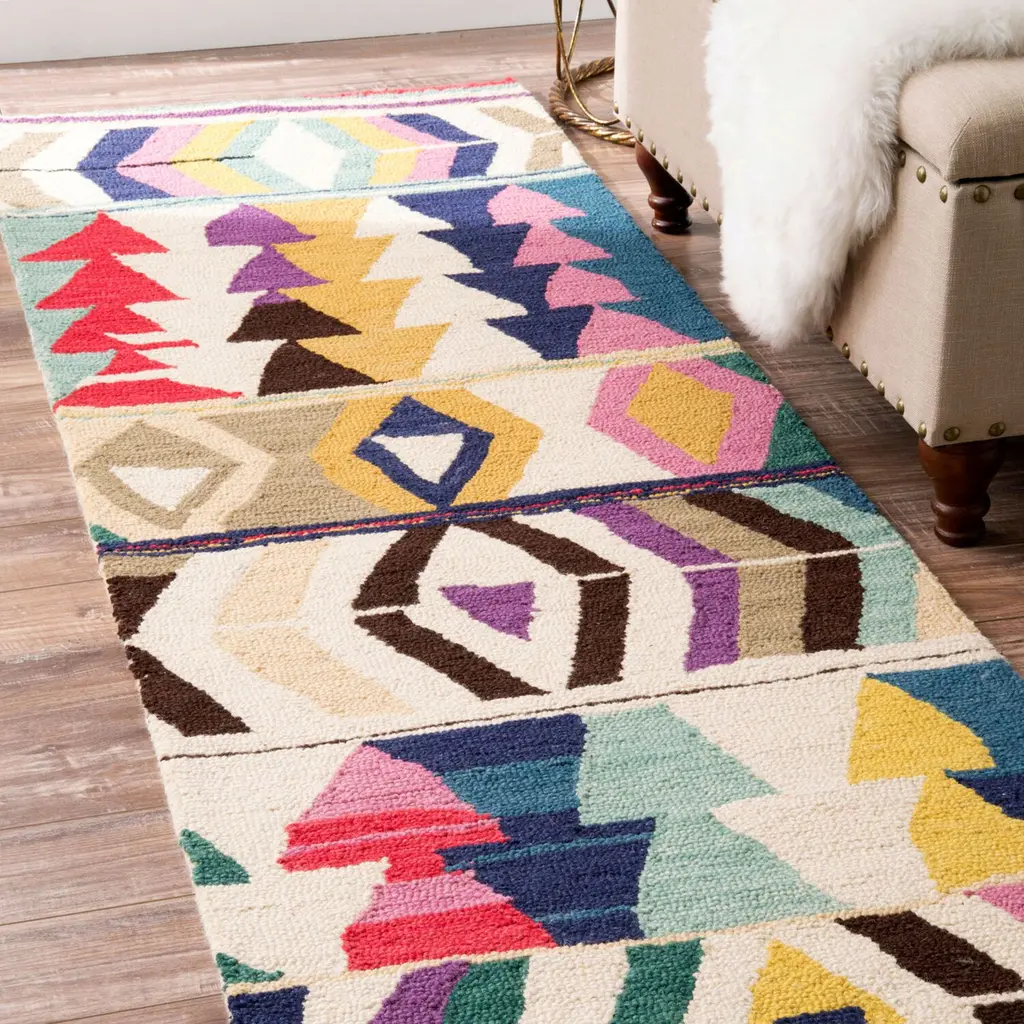 Hand-tufted by talented artisans in an array of diamonds, triangles and stripes, this area rug gives your space an instant makeover. It's crafted of 100% wool with a nonslip backing for lasting durability and secure placement. With a wow-worthy display of colors and wide variety of sizes available, this pattern-rich piece brings charming personality to any living room, reading nook or home office.