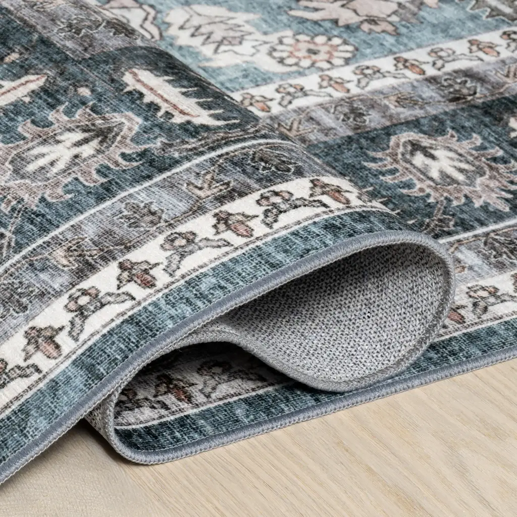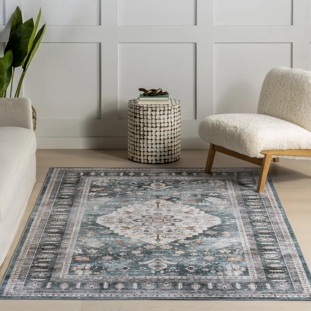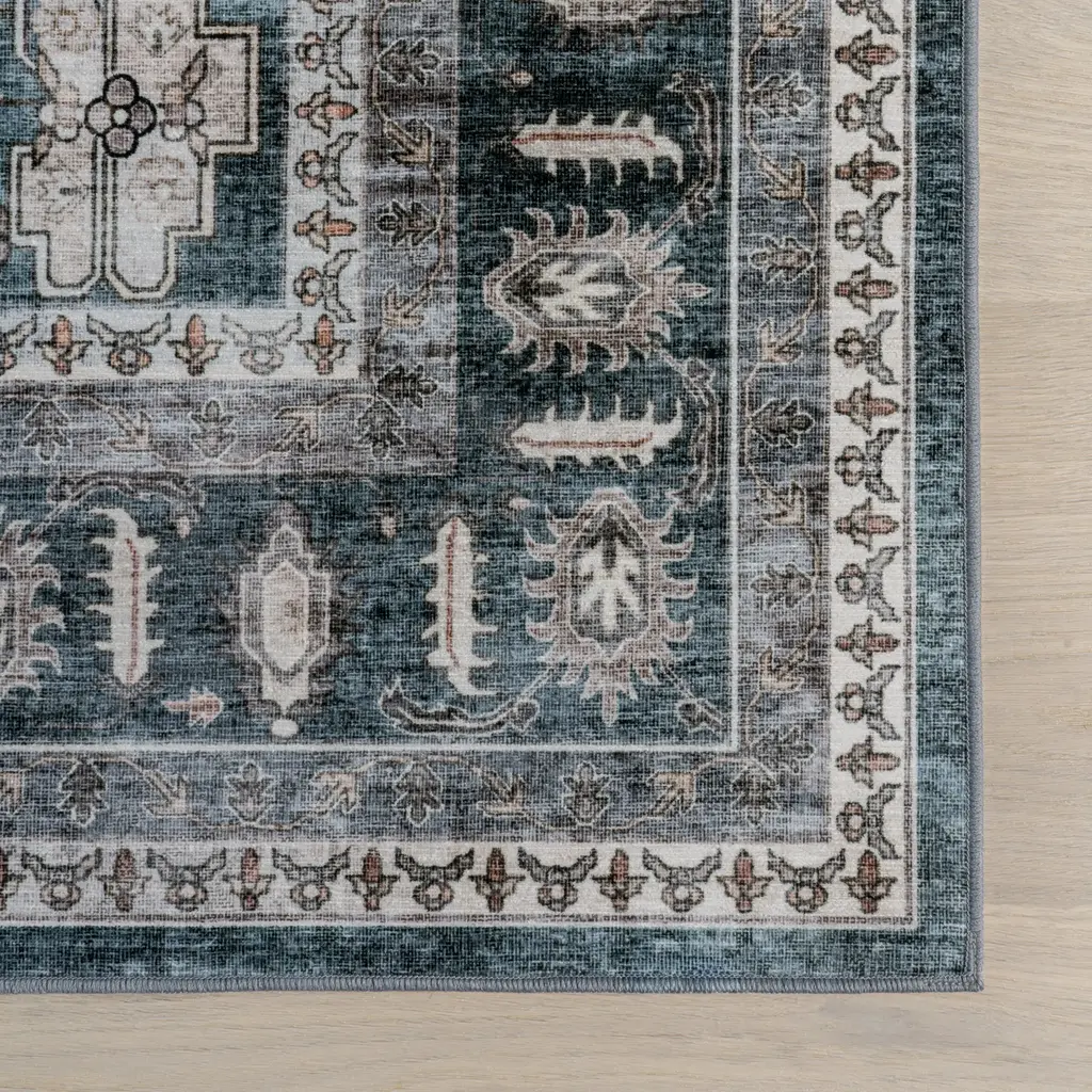 Keyara Spill Proof Washable Rug | Green - 2' 6" X 8'