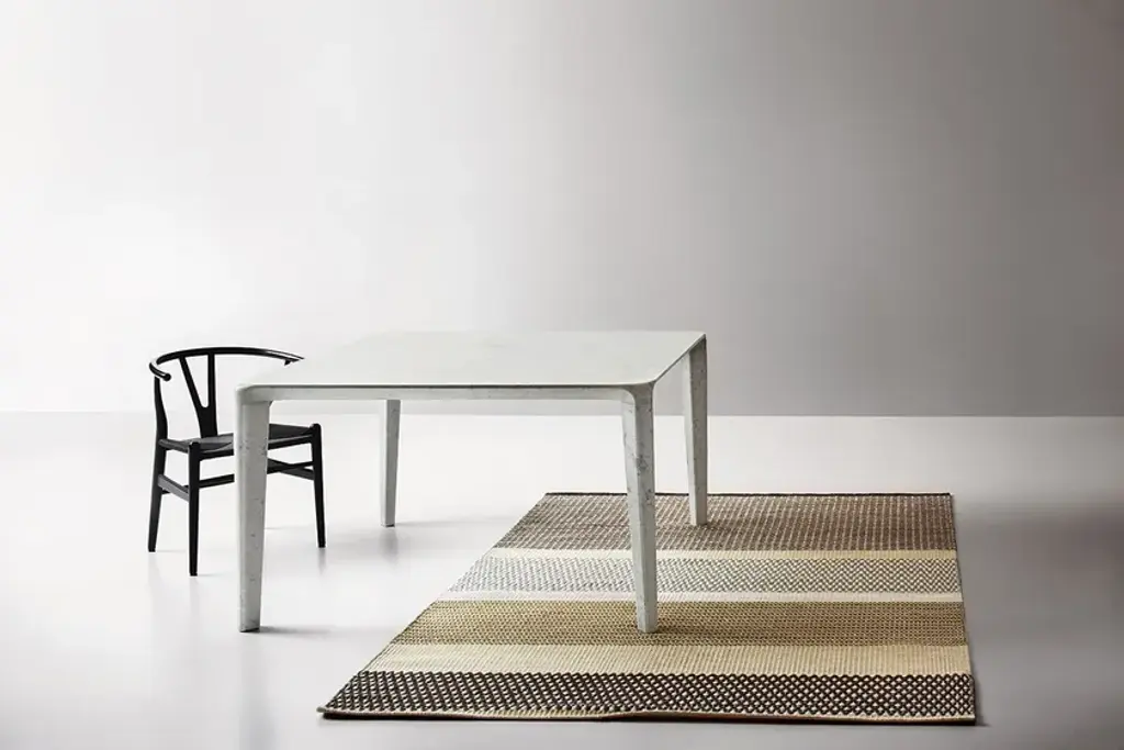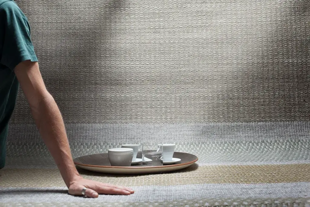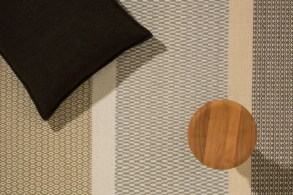 Handwoven rug in wool. Originally 'khadi' is an essential, minimal and 'raw' woven fabric in cotton, silk or wool . For Warli 'khadi' is a woolen rug, woven on a loom in a sequence of textures and colors, with different dyed and undyed wools. Colors KH|01 (ecru | light grey | brown | beige)KH|02 (ecru | light grey | brown | grey green)KH|03 (dark grey | light grey | green | teal)KH|04 (ivory melange | beige | light brown | light grey) Technical informations Quality: Handwoven 'dhurrie' carpet, wool. Thickness: 7 mm approx. Weight: 2,5 Kg/sqm approx.The configuration (size + color) must be completed to obtain the final price of the product.Dhurrie is a form of hand weaving very similar to “kilim”. It is made up exclusively of warp and weft, woven and not knotted. It is also called “flat weave”. The pattern or design is created solely by the weft which covers the warp. It does not allow for complicated patterns or textured surfaces as the other techniques do. This may at first appear as a limitation. But we have evolved the original technique by introducing additional threads to the basic wool weft (low-pile). The pattern is produced by this secondary high pile in viscose. The carpet is backed with the same latex and cotton canvas method as the hand tufted carpets.