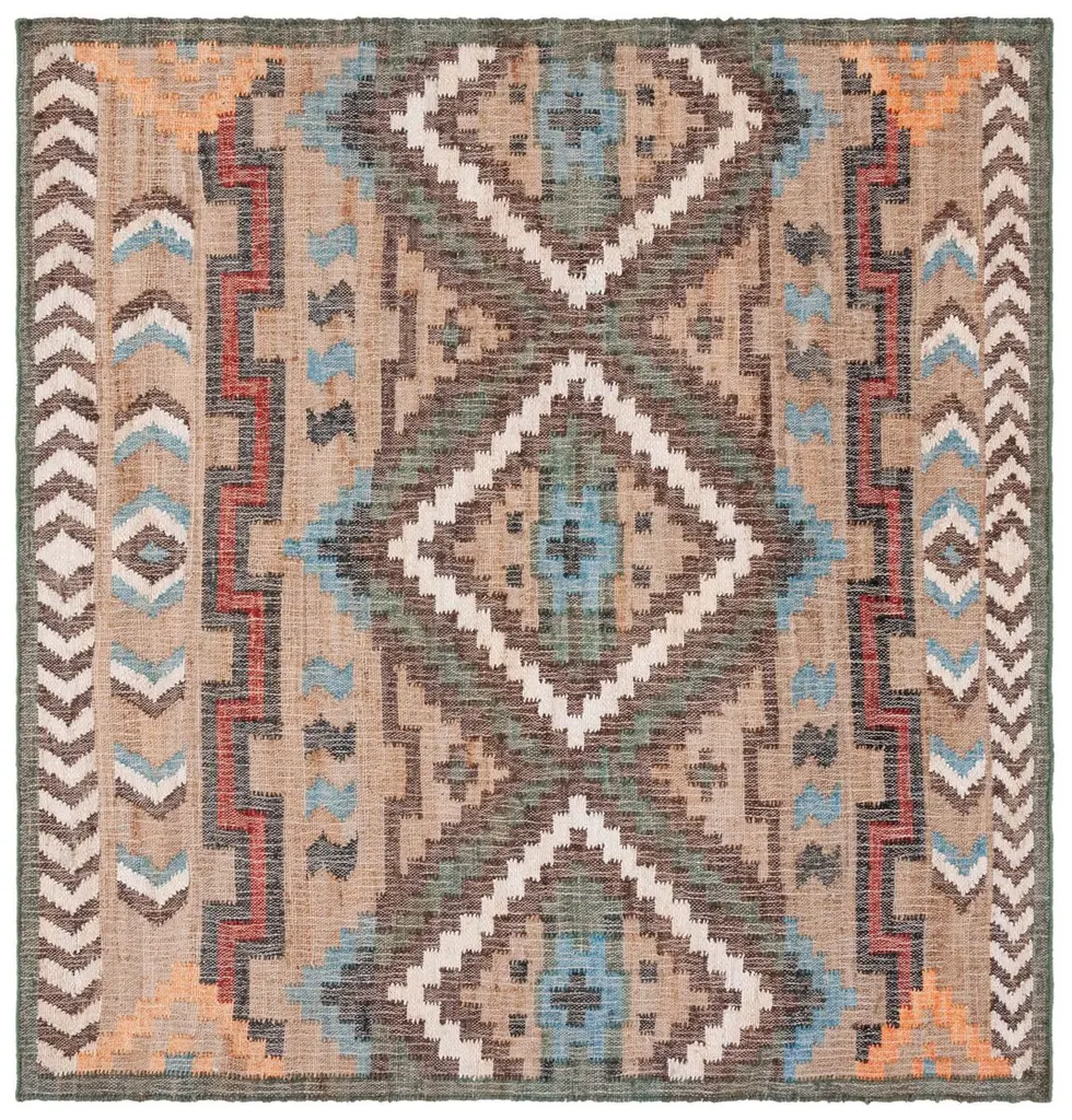 Discover the epitome of earthy charm and vibrant design with our exquisite 10' x 14' area rug, crafted with the finest jute for an impeccable flat weave that feels as natural as it looks. Bringing together the raw beauty of natural tones with a mesmerizing play of blue hues, this large rectangular rug proudly showcases a height of 1/4", offering a subtle elevation to any space. Handmade with care and precision in India, this rug is an ode to the traditional Bohemian style, exuding a free-spirited elegance that effortlessly complements a wide range of interior d?cors. The intricate pattern features a dynamic array of geometric motifs, tribal symbols, and a stunning array of complementary colors ranging from earthy browns, subtle beiges, to striking blues and touches of coral warmth, promising to infuse your home with a sense of adventure and cultural richness. Imagine this rug as the foundation of your living room, dining area, or bedroom, where each step is a reminder of the artistry and timeless appeal of artisanal craftsmanship. Resilient by nature, this jute rug is not only sustainably sourced but also incredibly durable, ensuring that its charm and comfort are part of your daily life for years to come. This 10' x 14' natural and blue Bohemian-style area rug is more than a home accessory?it's a statement piece that tells a story of wanderlust and appreciation for the world's artistic heritage, an unforgettable accent