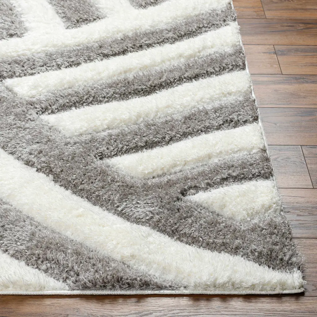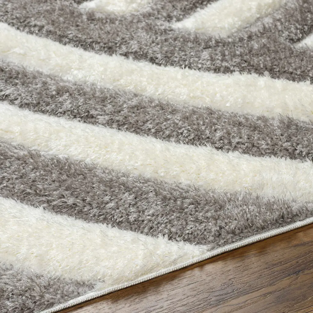 Collection: Kida Colors: Light Gray, Taupe, Gray, Medium Gray, Medium Brown Construction: Machine Woven Material: 100% Polyester Pile: Plush Pile Pile Height: 1.46" Styles: Contemporary Made In: Turkey Thickness: 1.57" Price Range: $$$$$ (Most Affordable)