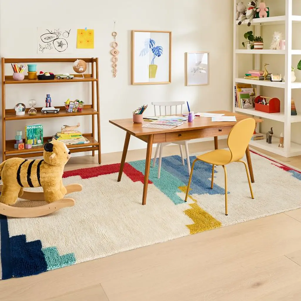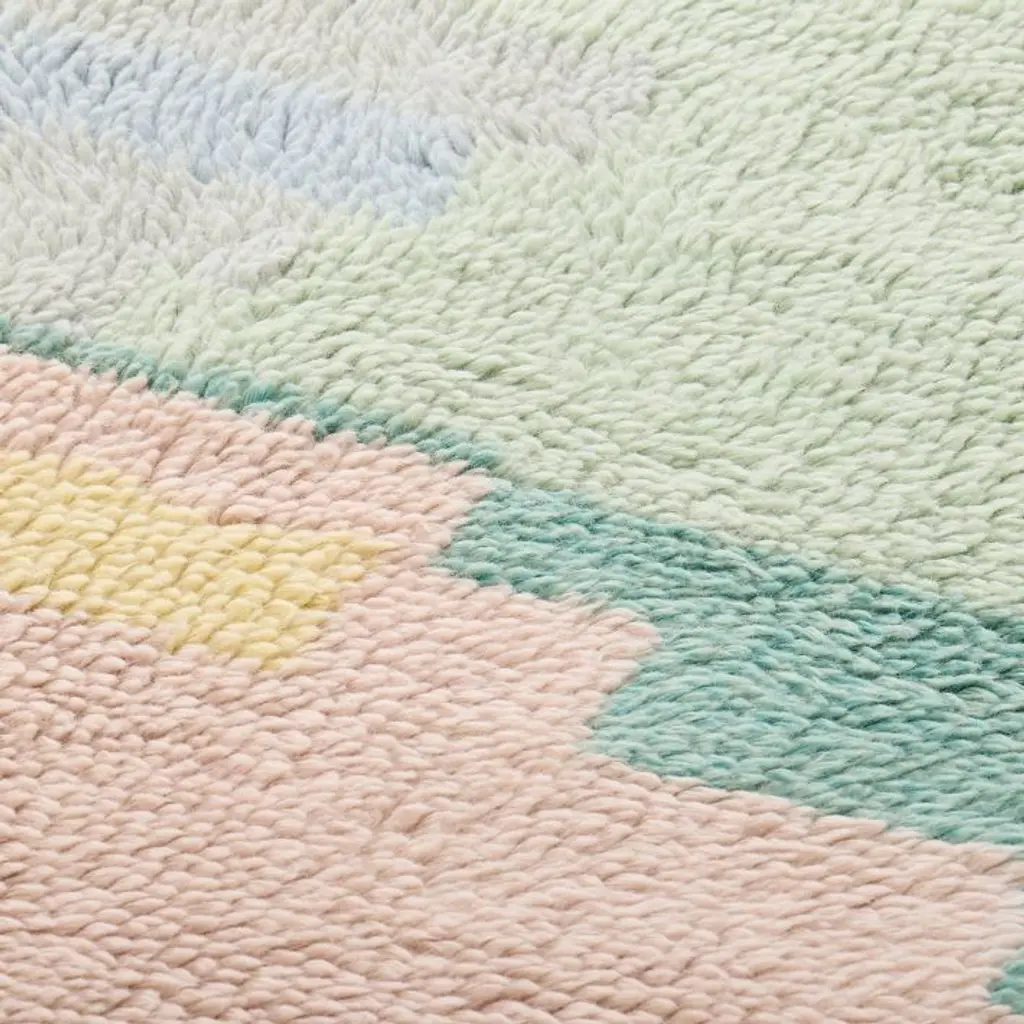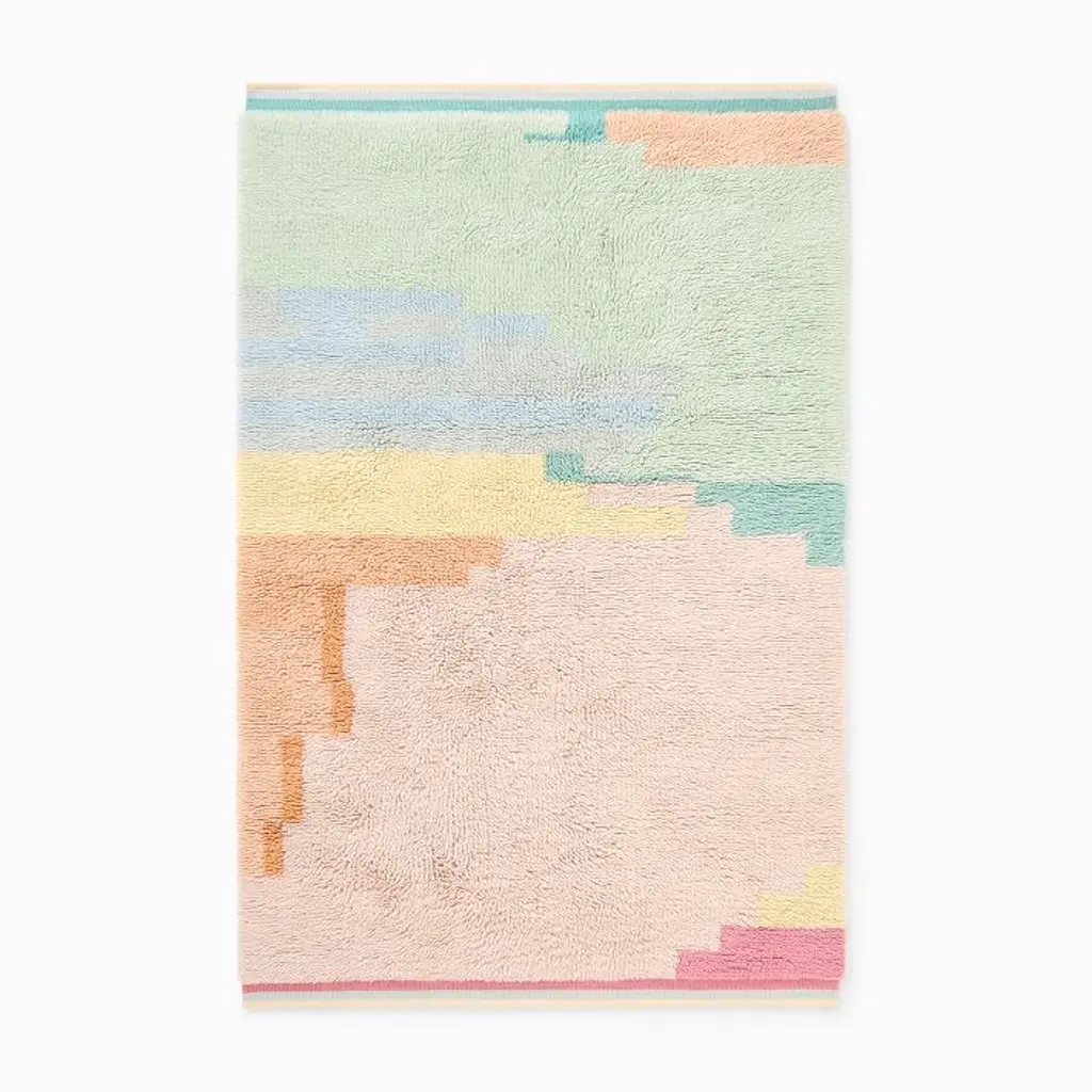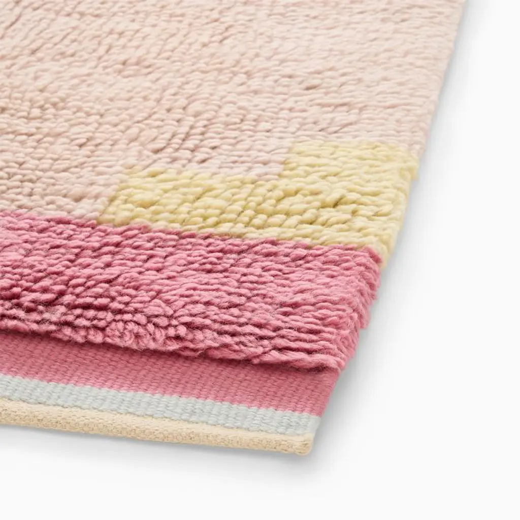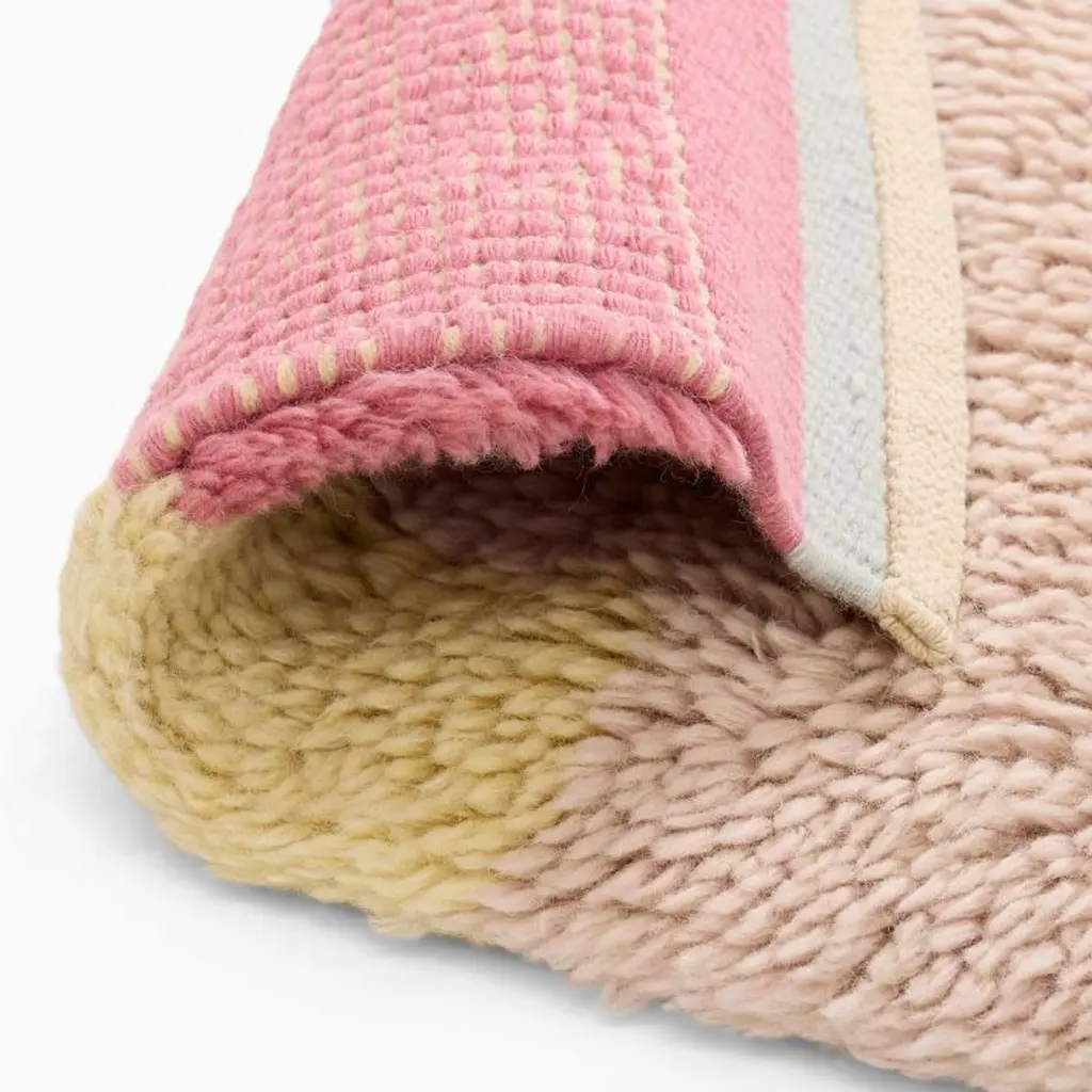 Handcrafted from soft, luxurious wool and cotton fibers. It layers vibrant and playful colors atop one another. Made in a Fair Trade Certified™ facility.