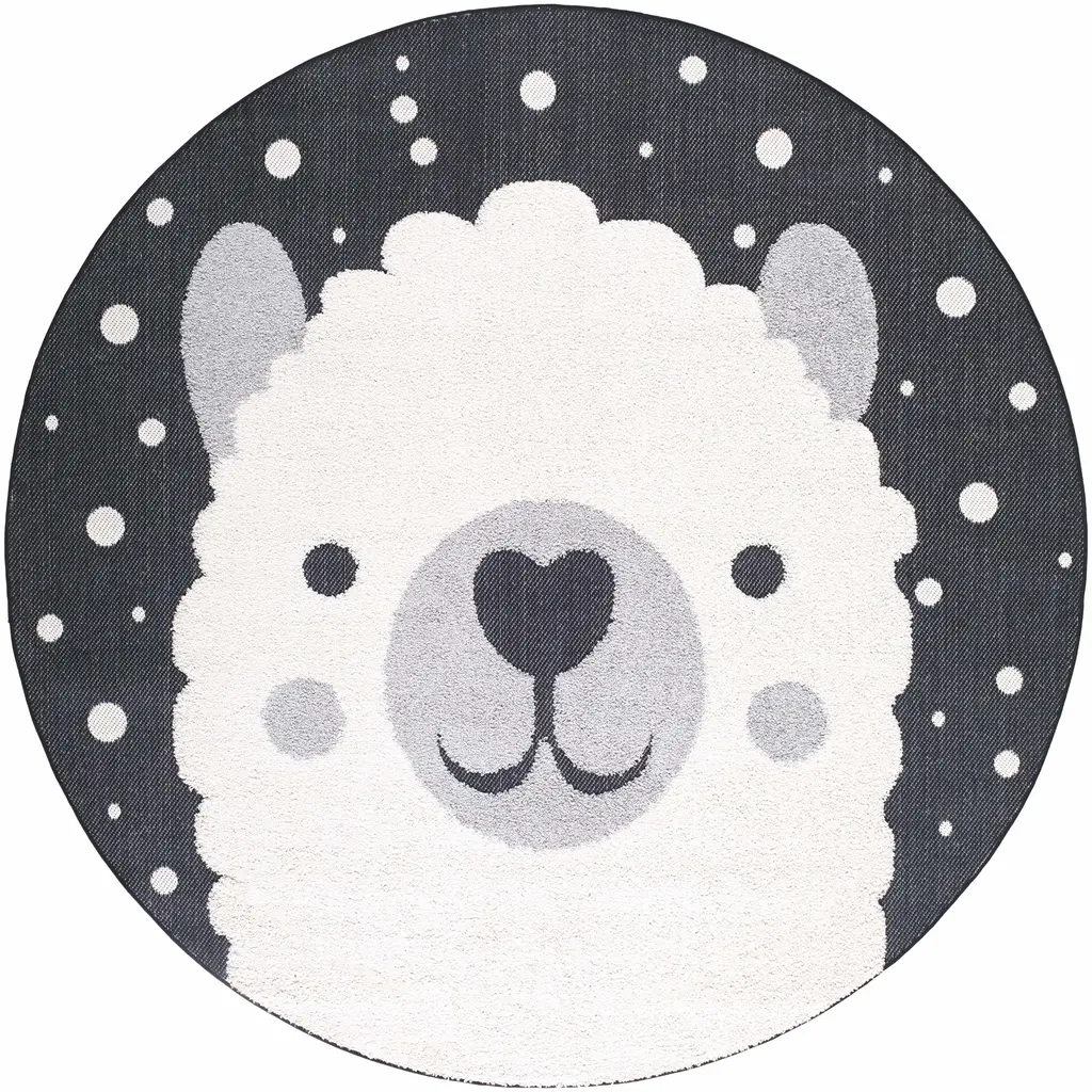 Kids Llama Animal Print Nursery Area Rug - Clearance - 5'3" Round
