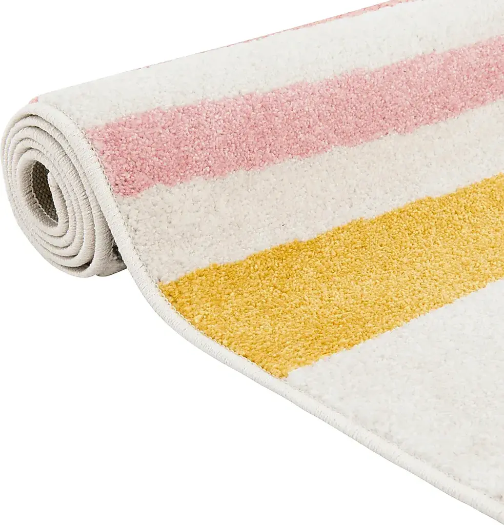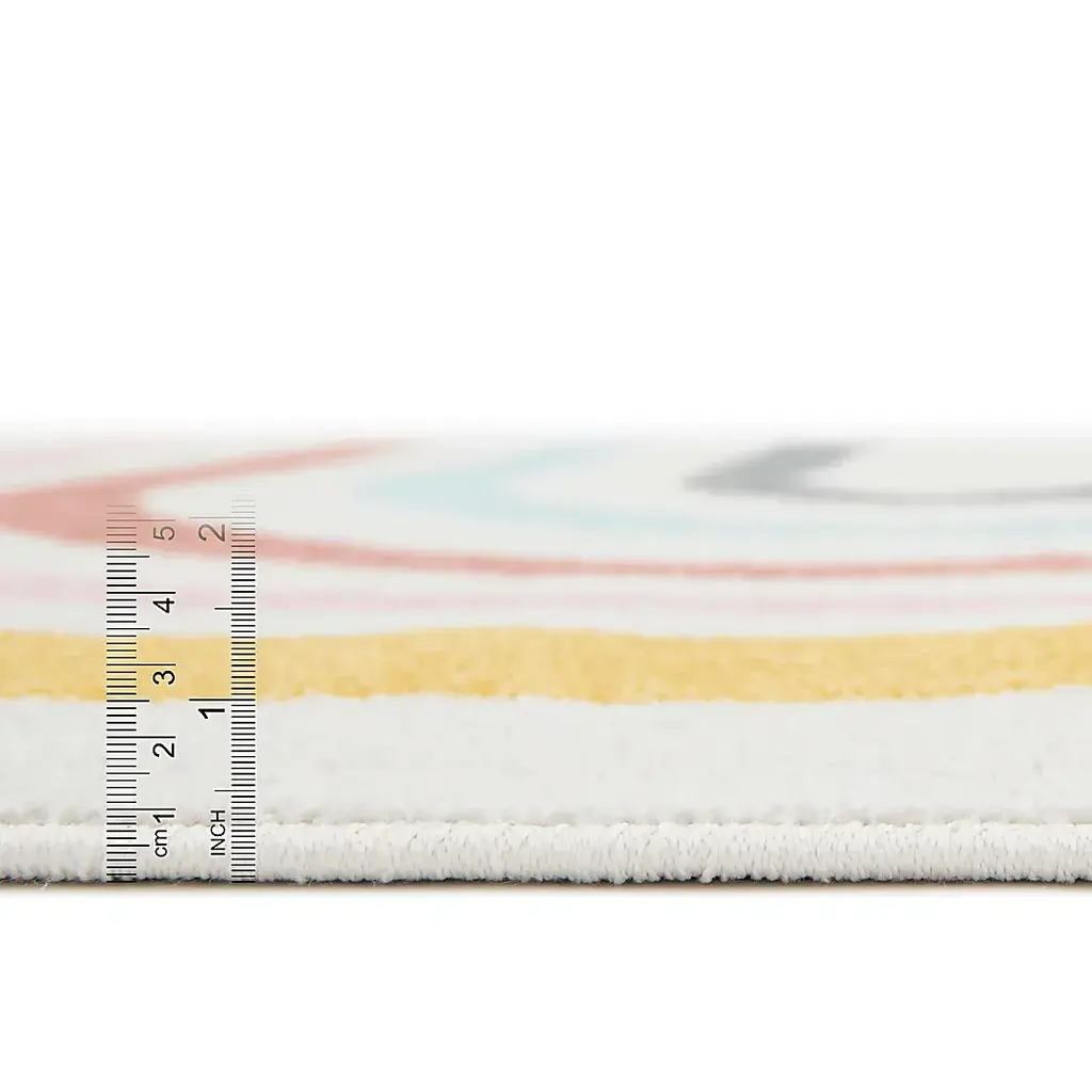 Create a magical atmosphere that will make memories to last a lifetime. Transform a child's room into a land of unicorns, jungle animals, and happy rainbows, letting imaginations soar. The Rainwares Collection features kids' rugs with soft, muted tones that perfectly match any aesthetic. Each colorful rug is made from extra-touchable, kid-friendly, stain-resistant polypropylene and is machine-woven with a medium pile height.
