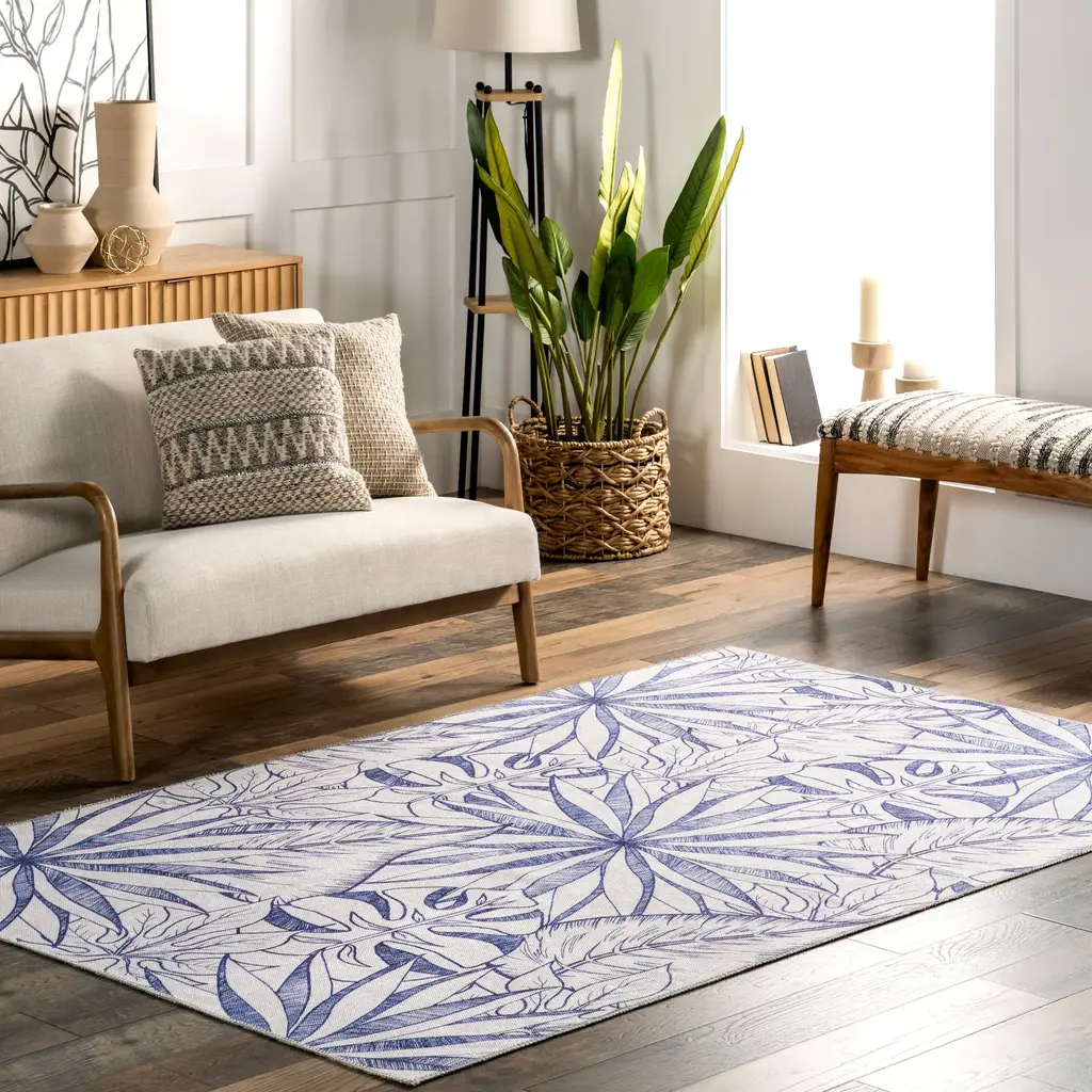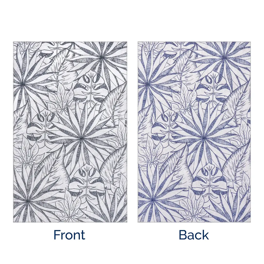 Kienna Reversible Tropical Washable Rug | Navy And Grey - 5' X 8'