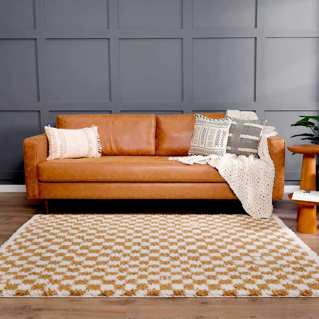 Kieu Mustard & Ivory Checkered Area Rug - 2' X 3' Rectangle