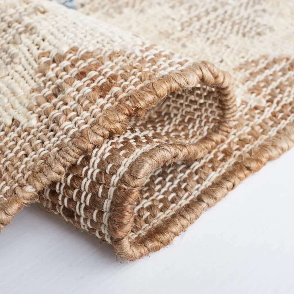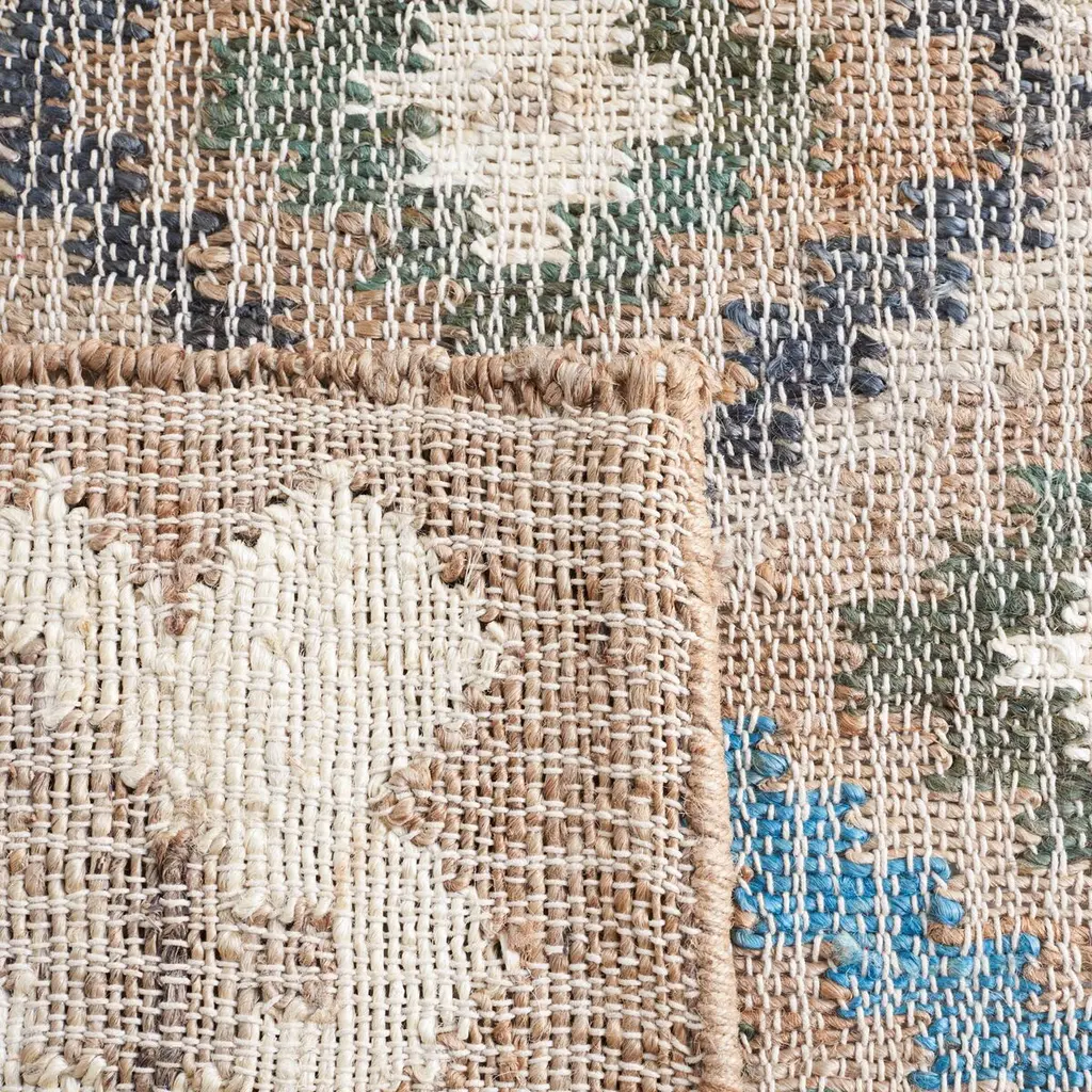 Elevate your home decor with the exquisite artistry of our Bohemian-style area rug, meticulously handcrafted in India. This 3' X 5' small rectangle rug, with its slim 1/4" profile, is a perfect blend of tradition and modernity, designed to complement any room with its timeless elegance. Crafted with the finest jute material, this area rug is constructed using the Flat Weave technique, ensuring durability and a lightweight feel underfoot. The intricate pattern showcased in the image harmoniously blends tranquil blues and soothing ivory tones, creating an ethereal motif that commands attention. With its captivating design, our rug brings a serene and cultured ambiance to your space. Whether it's anchoring your living room, accenting your hallway, or adding character to your bedroom, this rug promises to infuse a sense of worldly charm into your abode. Embrace a piece of Indian heritage with this beautifully designed area rug that is as functional as it is aesthetic.