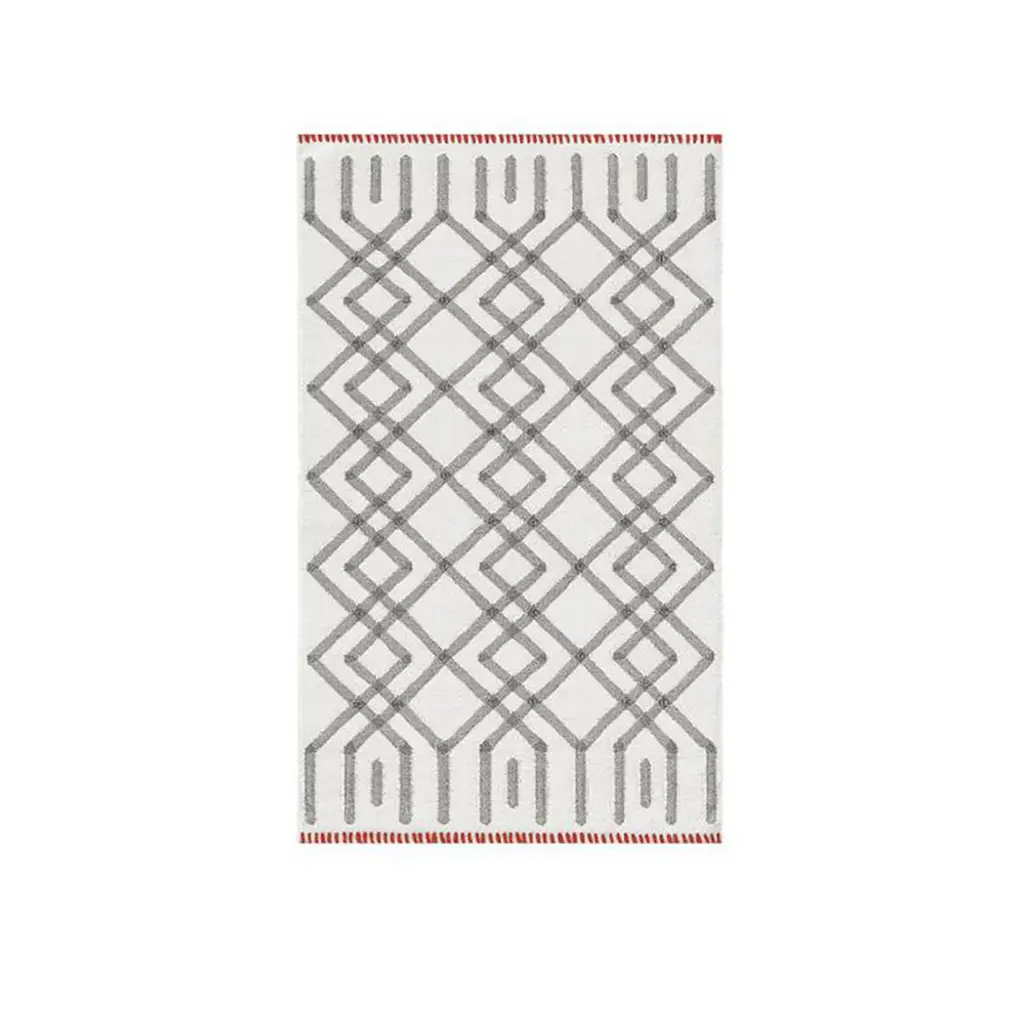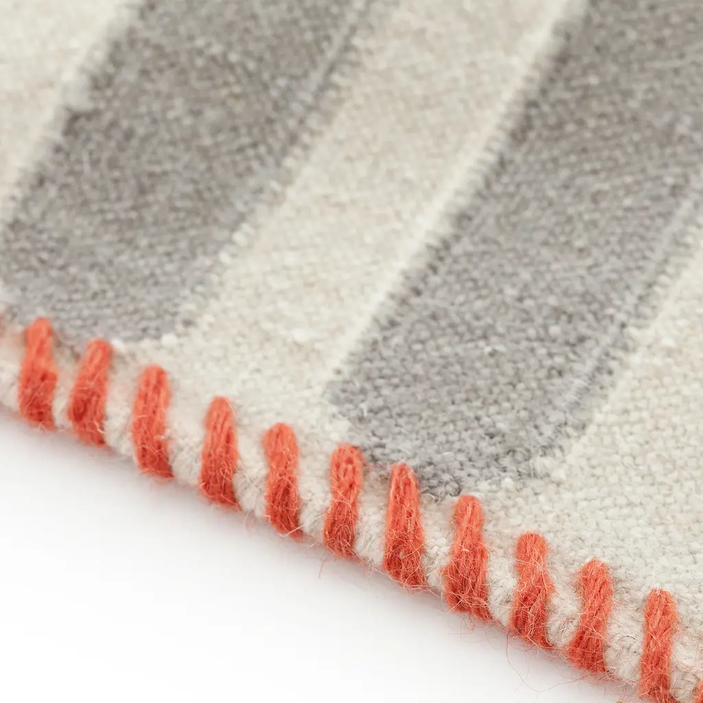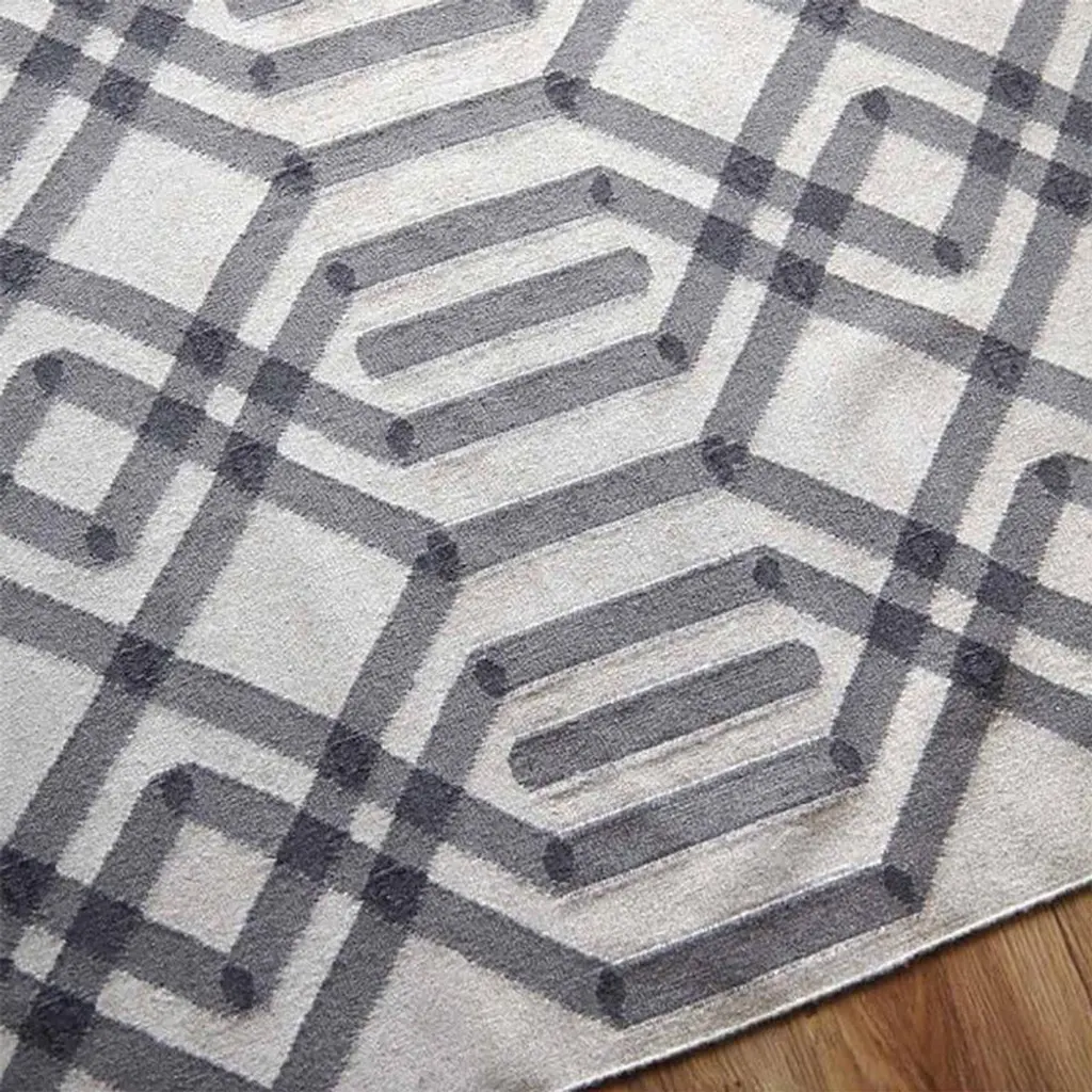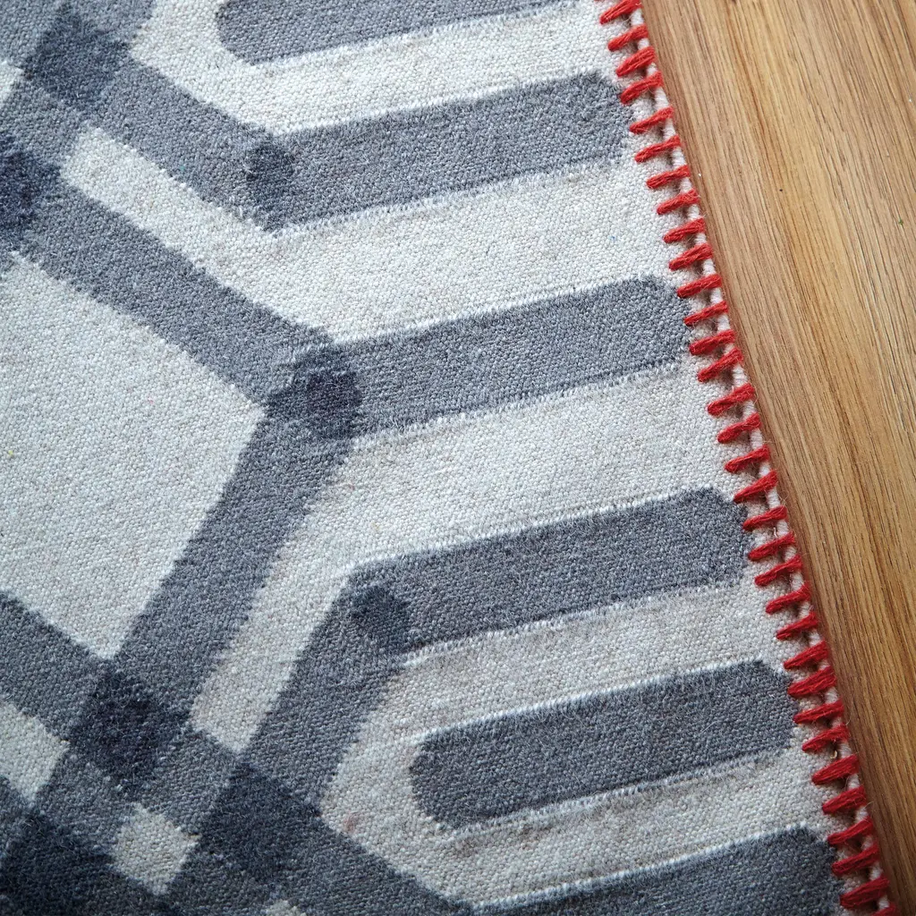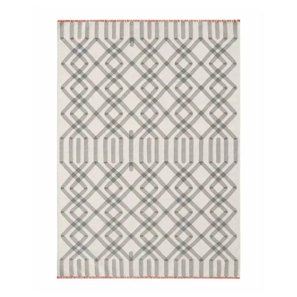 Recalling the desert landscape of the Bedouins DUNA is firmly part of the Mediterranean family of cultures united by the sun and its intense light, a light that fades, that fascinates and that shimmers in the heat. A geometric motif that is dream like, monochromatic and liquid. DUNA is part of the KILIM collection of rugs, and inspired by the nomadic way of life and the use of rugs to construct mobile living spaces. The idea came about from the combination and superimpositions of layers similar to the ones that are used when creating a watercolor painting. So that different grades of transparencies are mixed together and form a monochromatic grid that almost appears to be three dimensional. Features