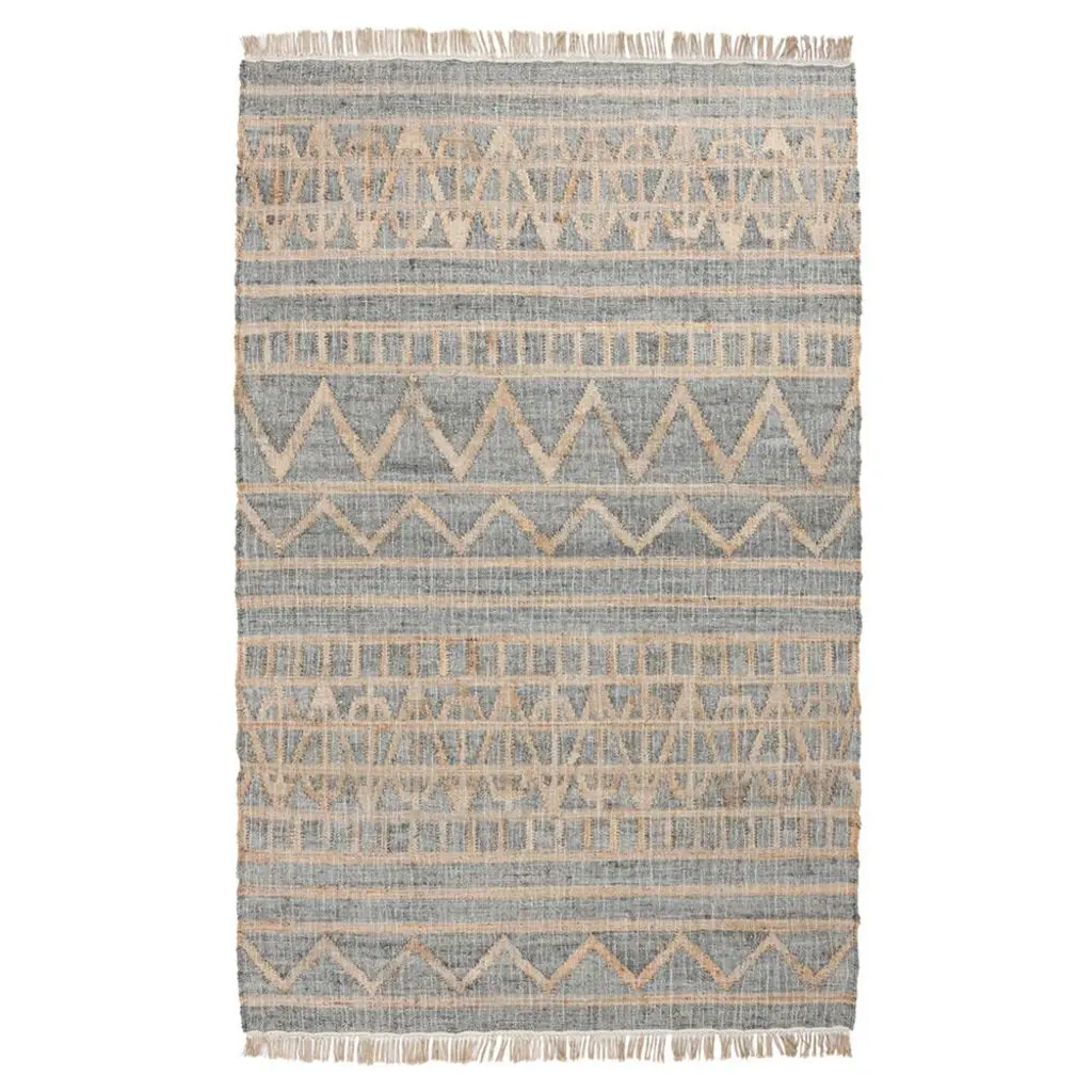 Kingston is made with sustainably sourced jute fibers that have been hand woven into a geometric pattern. The distressed fibers give the rug a worn in look and add to its charm. Fringe adds a playful detail to Kingston and completes its distressed aesthetic. 2W x 3D 80% jute/20% cotton Handwoven Distressed Pattern No Backing Medium Traffic For Indoor Use Only Rug Pad Recommended Fringe on Both Ends Transitional