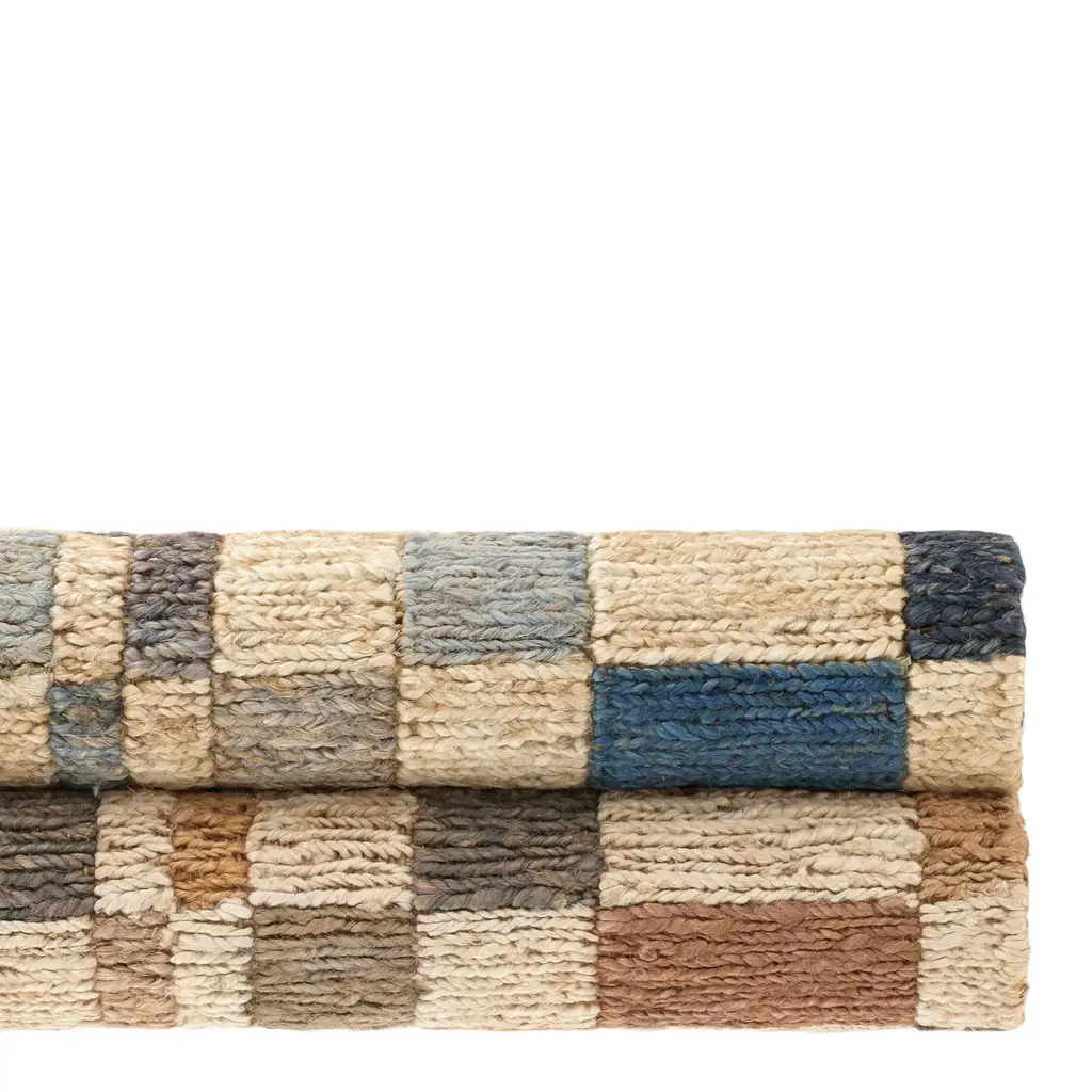 Connect to the earth with the relaxed aesthetic of a foundational rug, embodying a legacy of quality craftsmanship and elegant modernity. Soothing shades of calm, inspired by nature's harmony, form a bold rhythmic geometric composition. Durably woven with sustainable jute in a deeply textured, playful variegated patchwork. Timeless and contemporary, free-spirited and modern, this hard-working beauty is offered in a sophisticated palette of mineral-rich neutrals. Designed for us by Marie Flanigan, an award-winning interior designer, to reflect her signature style of timeless elegance and innovative simplicity.