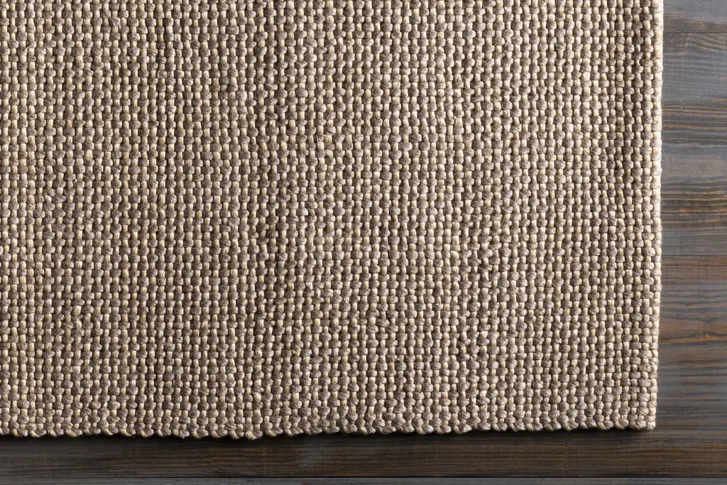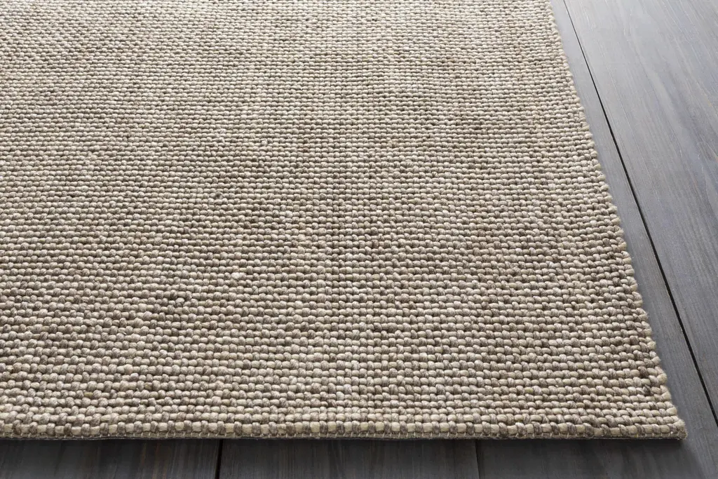 Collection: Kirksville Colors: Beige, Charcoal Construction: Hand Woven Material: 70% Viscose,30% NZ Wool Pile: No Pile Styles: Contemporary Backing: Canvas Made In: India Thickness: 0.5" Price Range: $$$$$ (Affordable)