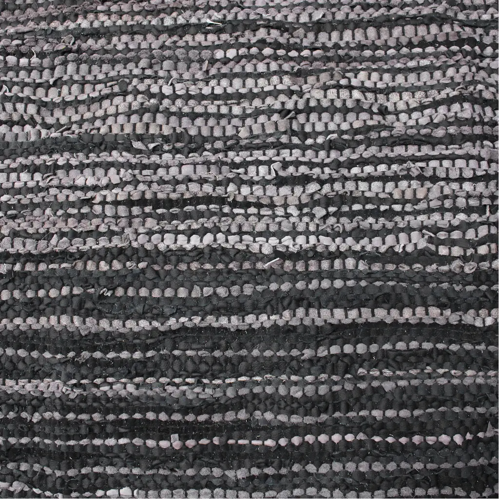 This Hand Woven Rug Features Rescued Leather In Shades Of Taupe And Rustic Charcoal Displaying An Ombre Effect.