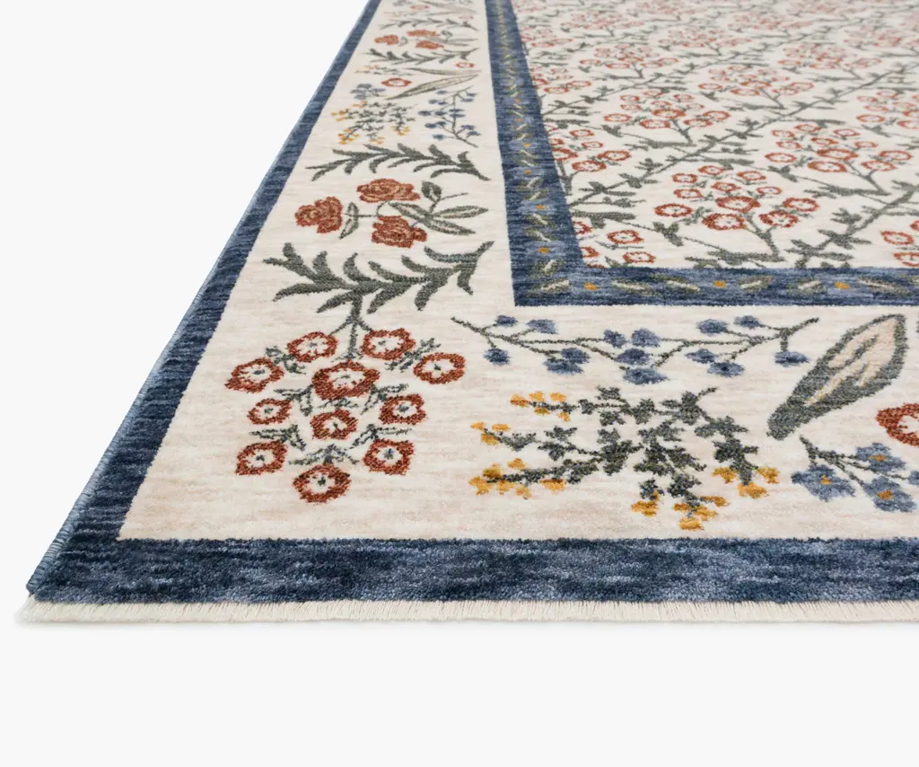 Our Suzani Garden rug takes its cues from traditional embroidered suzani te×tiles native to Central Asia. Power-loomed in Turkey with polypropylene and polyester and finished with a subtle fringe trim, this rug has a soft pile that doesn't shed and is stain resistant, fade resistant, and colorfast. Part of our Rifle Paper Co. × Loloi collaboration. The layout and scale of our rugs is adjusted to accommodate each available size, and may be different than what is pictured here. Images of each size are available by hovering over the desired size on our desktop site.