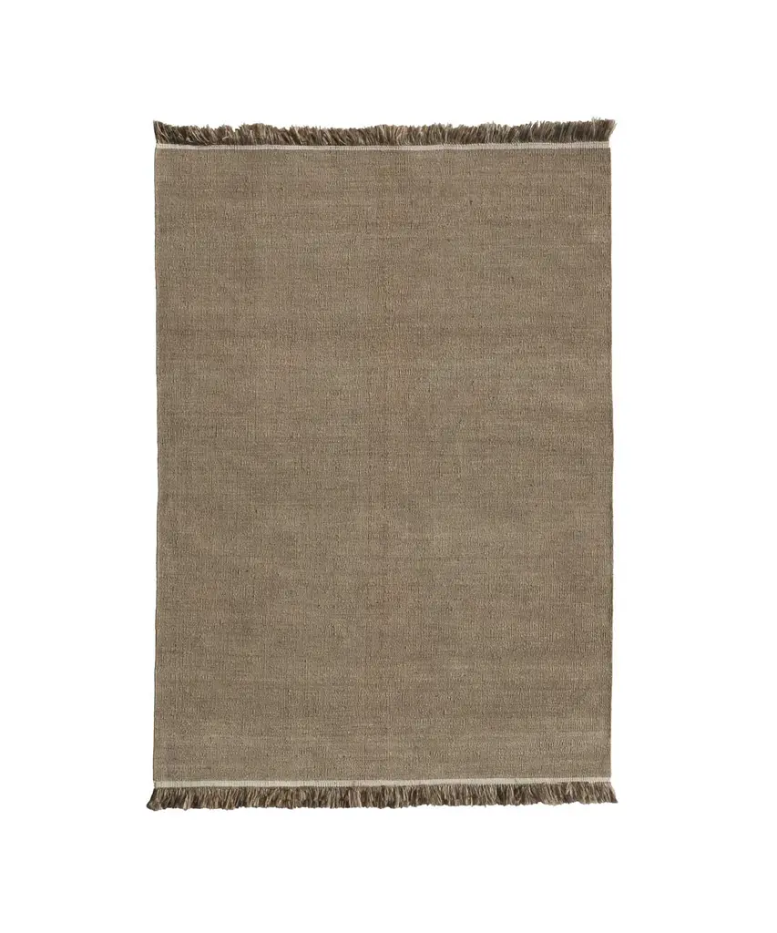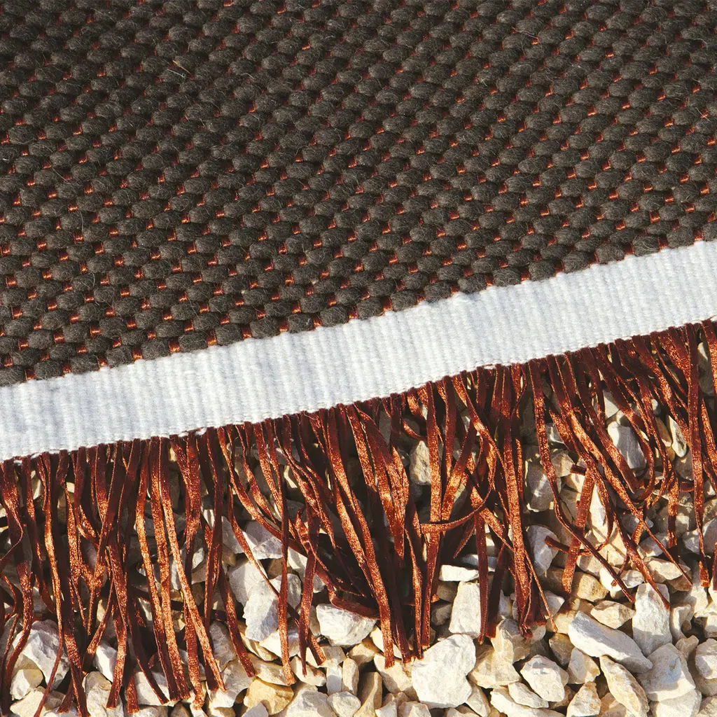 Distinguished by a stunning interplay of anthracite and rust-colored yarns, deftly woven by hand from wool felt, jute, and polyester, this rug features a double surface with different textures. Clean and simple while elegant and timeless, it is available in a smaller size and in other colors. Please consult the Concierge and the Artemest catalog for details.