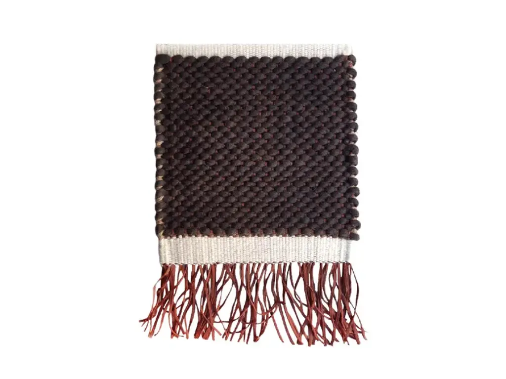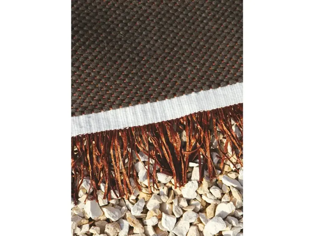 Kleos is a hand-woven rug made of 70% felt, 20% polyester and 10% jute. Flat weave finish in felt and polyester. Customizable color and size. Not suitable for outdoor use.Weavings of very different yarns draw a "double" surface, rigorous on one side and full of intrigue on the other. Felt, jute and polyester are the protagonists.Flatweave rugs, commonly called mats, are worked using the loom operated by the craftsman who weaves a series of vertical threads (warp) of a given yarn with a series of horizontal threads (weft). This technique is characterized by the lack of "fleece" and backing. Expert manual skills are required for this traditional weaving method that allows you to produce flat rugs with detailed patterns.
