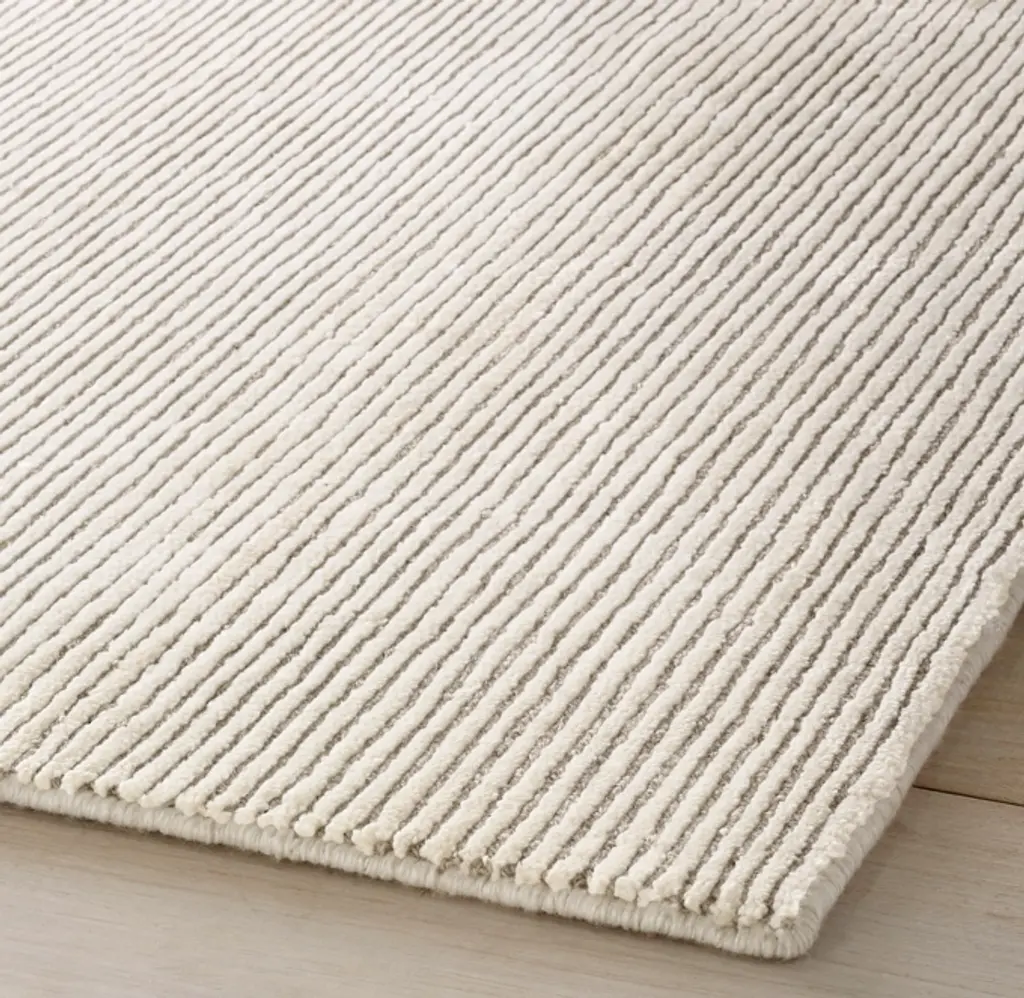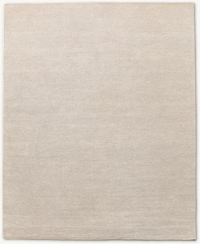 A mix of complementary materials lends our solid Korda rug compelling yet understated variations. Looped wool and sheared viscose alternate across the surface, creating textures and a dynamic play of light.